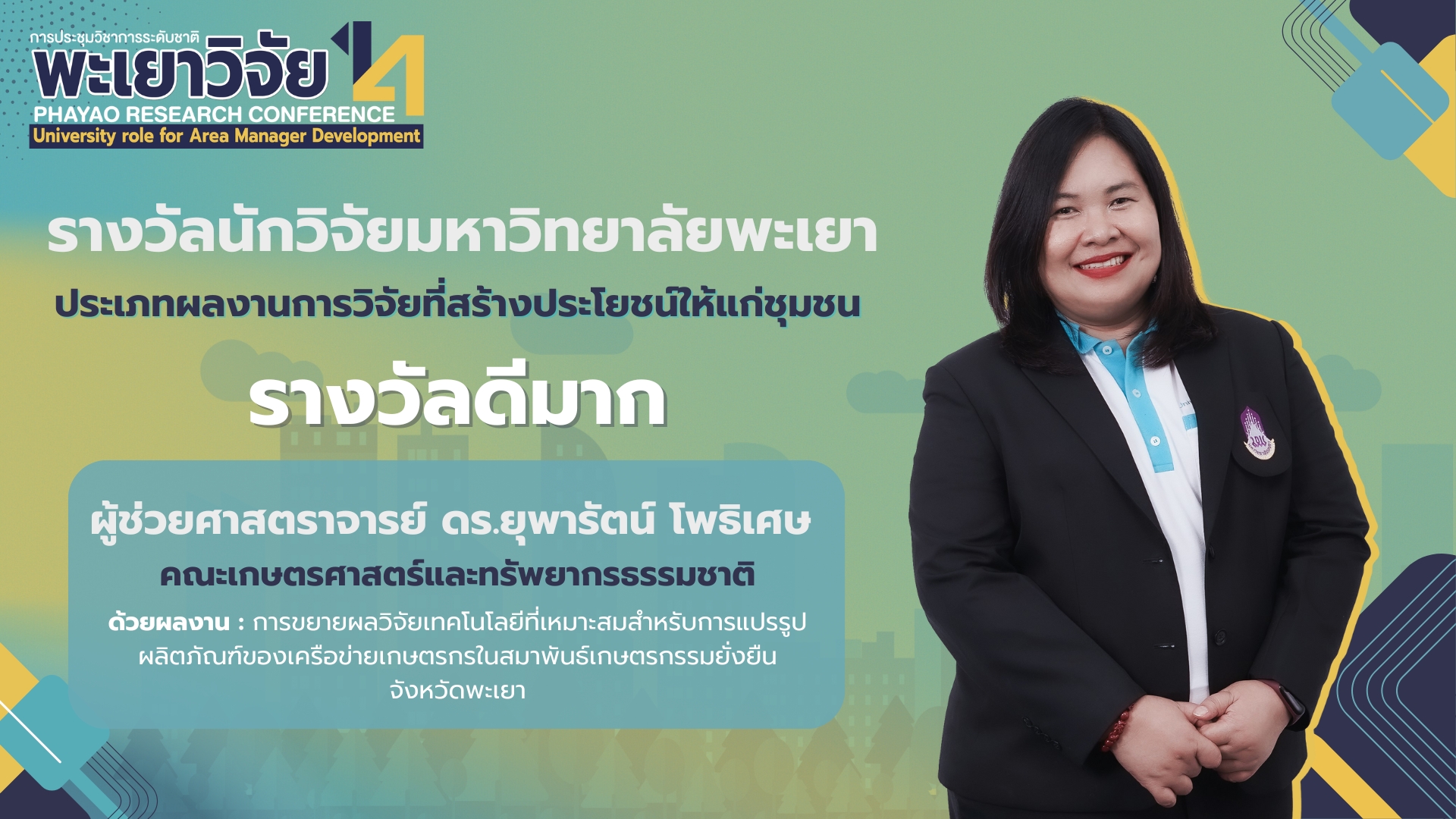 รางวัลนักวิจัยดีมากมหาวิทยาลัยพะเยา ประเภทผลงานวิจัยที่สร้างประโยชน์แก่ชุมชน