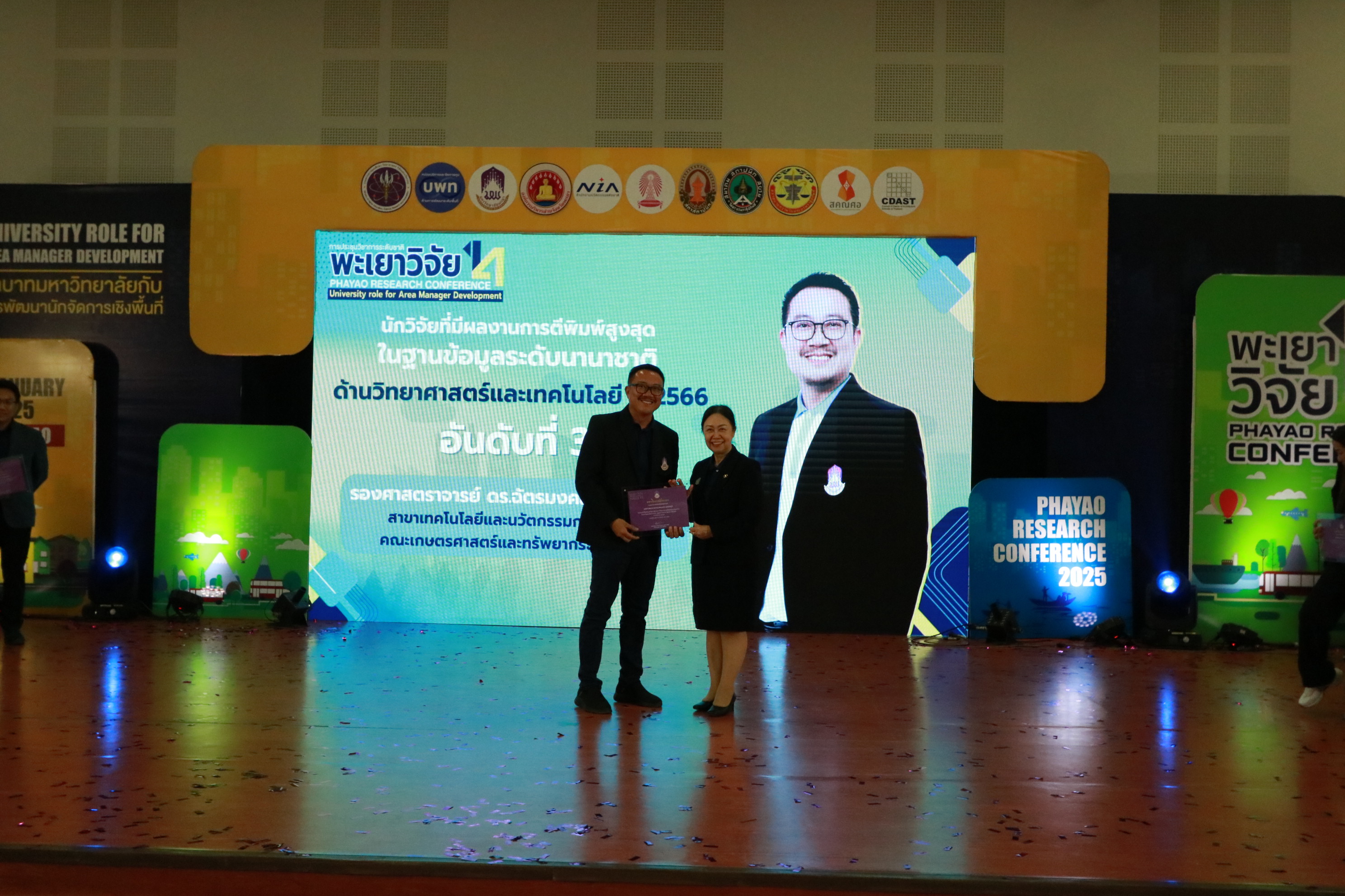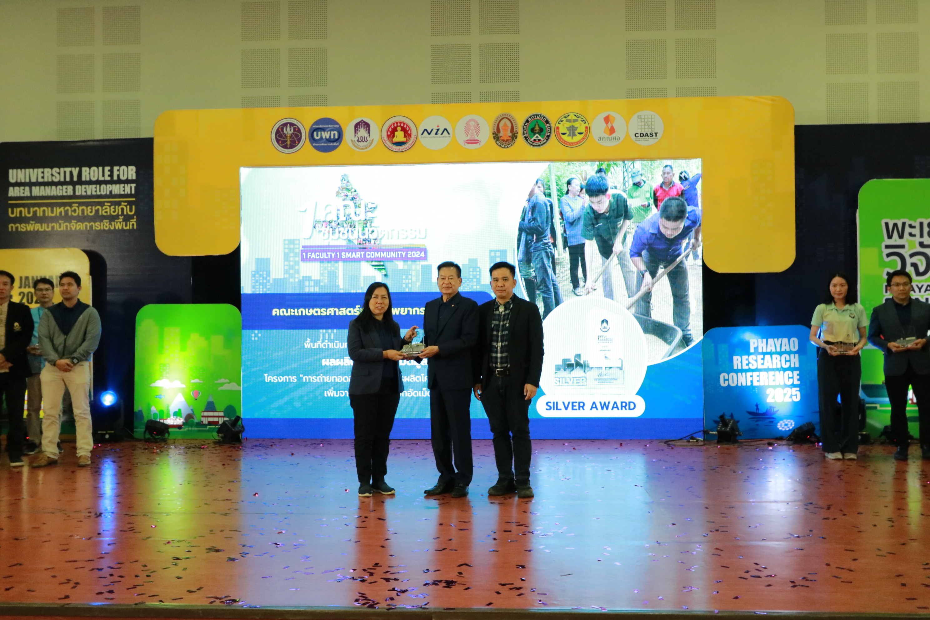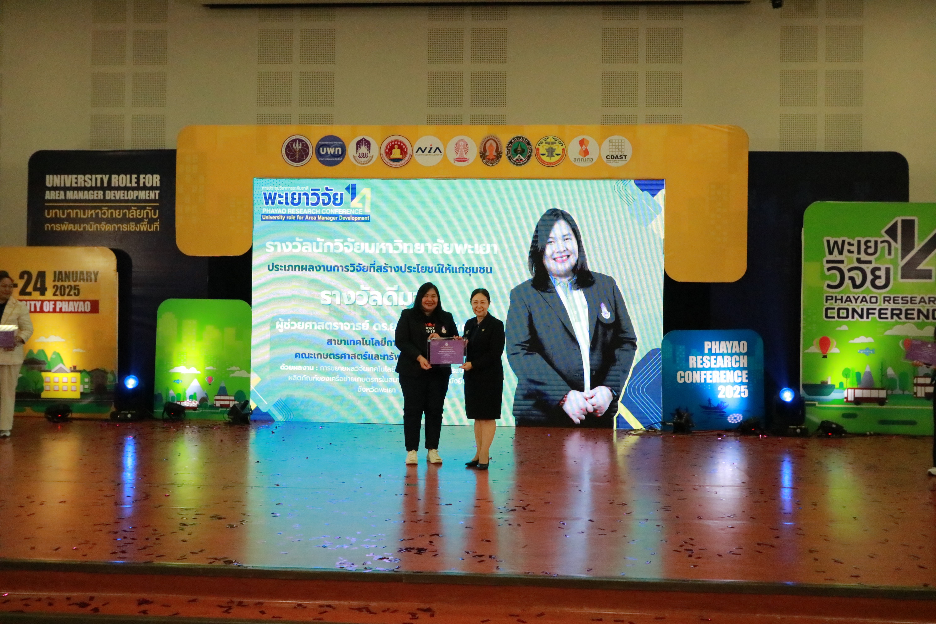 Excellent Researcher Award in the category of research that benefits the community, awarded to Assistant Professor Dr. Yuparat Potiset for the project “Scaling Up Research on Appropriate Technologies for Processing Agricultural Products of Farmer Networks in the Phayao Sustainable Agriculture Confederation.”