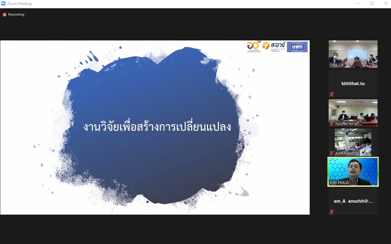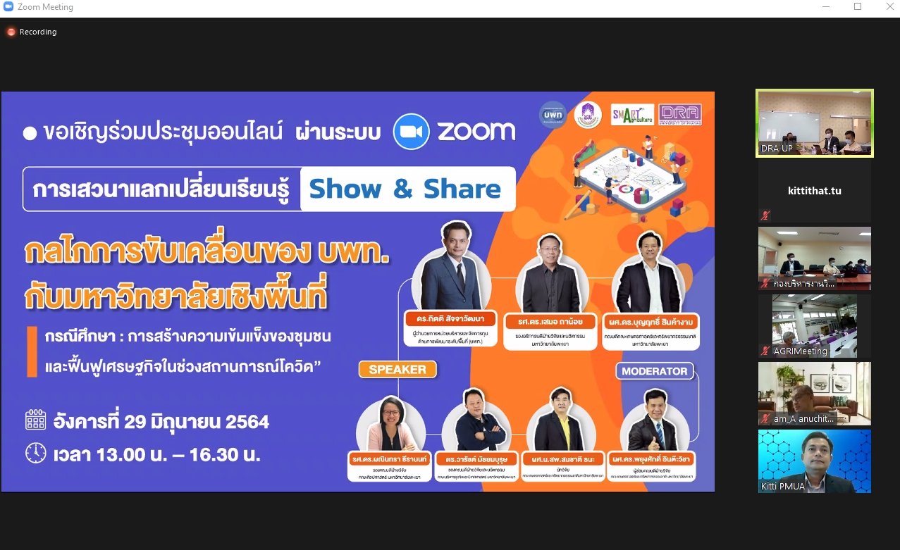 วันที่ 29 มิถุนายน 2564 คณะเกษตรศาสตร์และทรัพยากรธรรมชาติ ร่วมกับกองบริหารงานวิจัย มหาวิทยาลัยพะเยา จัดโครงการ "กลไกการขับเคลื่อนของ บพท. กับมหาลัยเชิงพื้นที่" กรณีศึกษา : การสร้างความเข้มแข็งของชุมชนและฟื้นฟูเศรษฐกิจในช่วงสถานการณ์ COVID-19 ผ่านระบบ Online ZOOM ได้รับเกียรติรองอธิการบดีฝ่ายวิจัยและนวัตกรรม รศ.ดร.เสมอ ถาน้อย เปิดโครงการดังกล่าวฯ