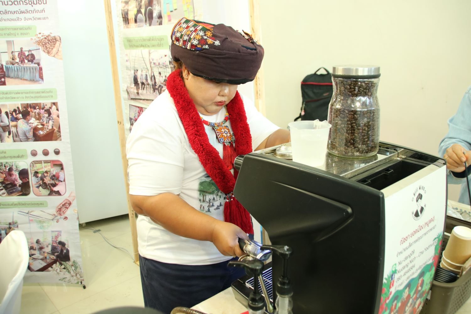 ผู้ใหญ่บ้านปางปูเลาะ น.ส. ณิชยา ยอดเมือง ประกลุ่มวิสาหกิจชุมชนวัดติโลกอาราม ร้านกาแฟท่าเรือ@กว๊านพะเยา