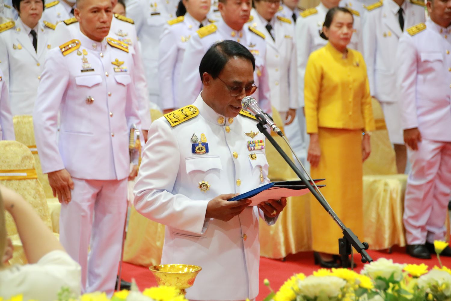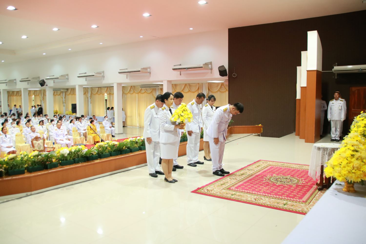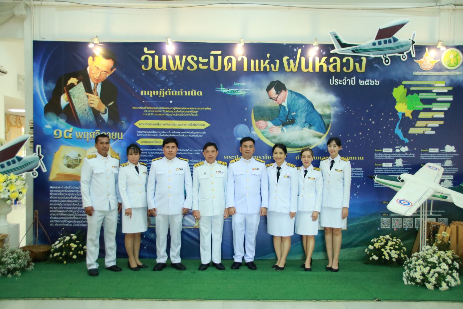 พร้อมวางพานพุ่มดอกไม้สด เพื่อน้อมรำลึกในพระมหากรุณาธิคุณที่ทรงก่อให้เกิดโครงการพระราชดำริฝนหลวงบรรเทาความทุกข์ยากของพสกนิกรให้พ้นจากความแห้งแล้ง ร่วมกับข้าราชการ ทหาร ตำรวจ พนักงานรัฐวิสาหกิจ องค์กรปกครองส่วนท้องถิ่น กำนัน ผู้ใหญ่บ้าน และประชาชนชาวจังหวัดพะเยา เข้าร่วมพิธี ณ ศาลาประชาคม จังหวัดพะเยา