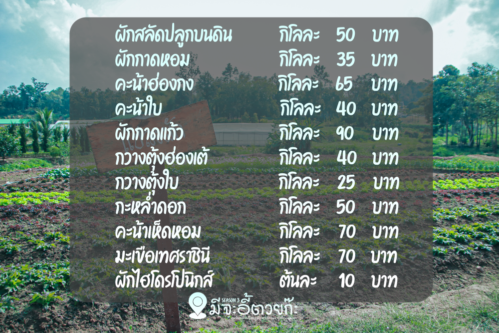 มีทั้ง ผักสลัด 10 สายพันธุ์, กะหล่ำหัวใหญ่ๆ, คะน้า, มะเขือราชินี, บร็อคโคลี่, ผักกาดแก้ว, ผักกวางตุ้ง ข่า !! นักขนาด ฯลฯ