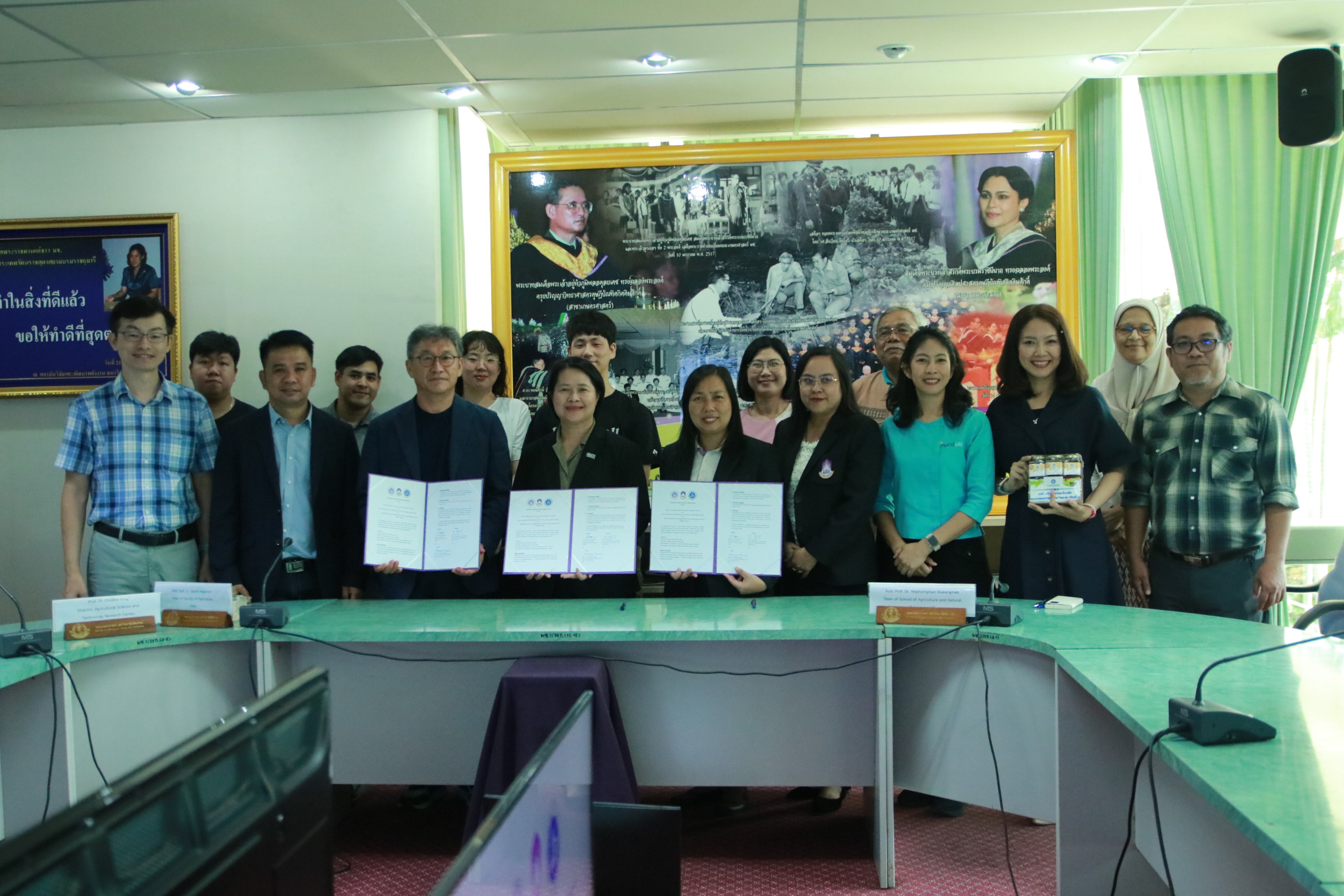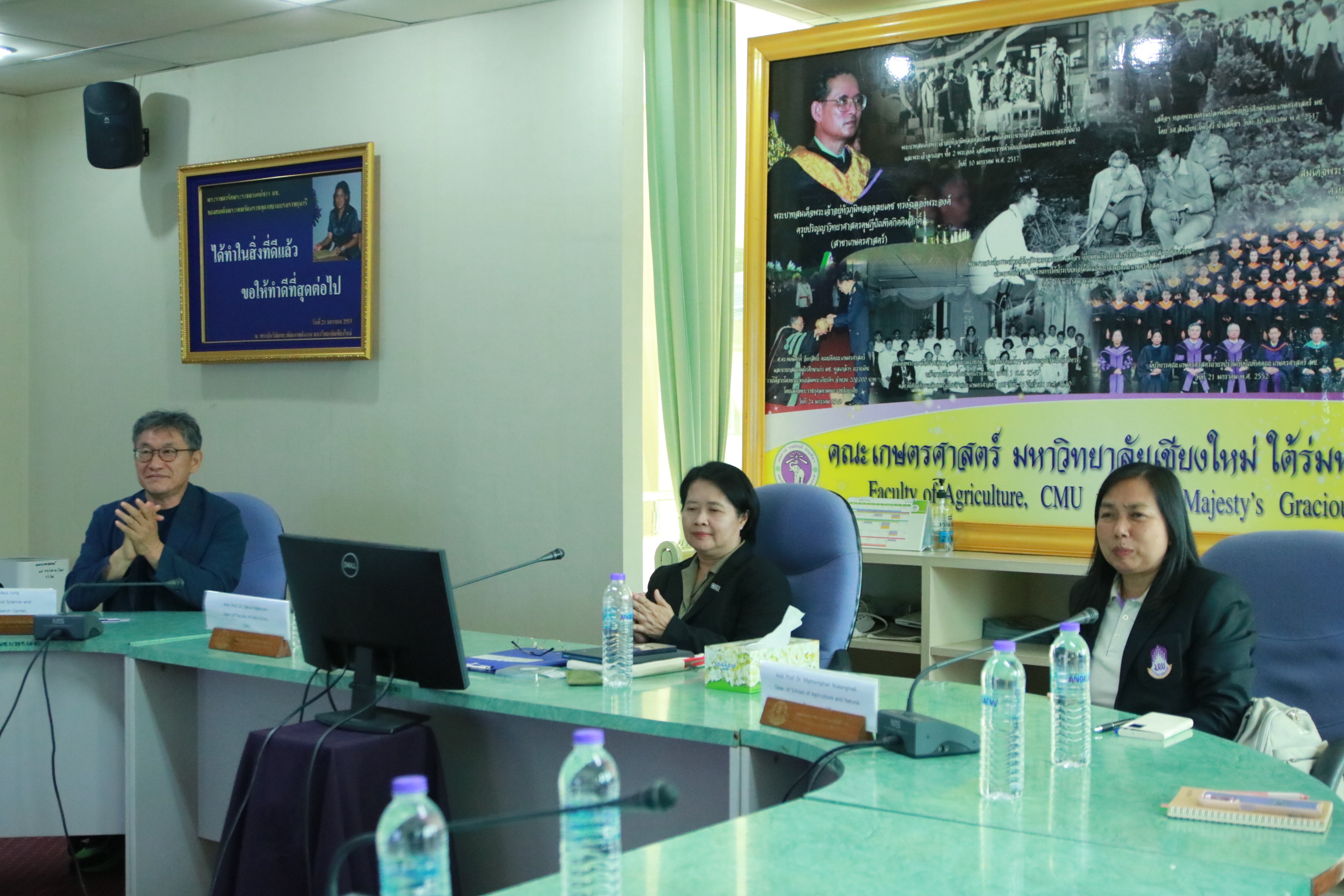 ผู้ช่วยศาสตราจารย์.ดร.วิพรพรรณ์ เนื่องเม็ก คณบดีคณะเกษตรศาสตร์และทรัพยากรธรรมชาติ มหาวิทยาลัยพะเยา พร้อมด้วย ผู้ช่วยศาสตราจารย์ ดร. ดรุณี นาพรหม คณบดีคณะเกษตรศาสตร์ มหาวิทยาลัยเชียงใหม่ และ Prof. Dr. Chuleui Jung Director, Agricultural Science and Technology Research Center, Andong National University สาธารณรัฐเกาหลี ร่วมลงนามในบันทึกข้อตกลงความร่วมมือทางวิชาการ ระหว่างคณะเกษตรศาสตร์ มหาวิทยาลัยเชียงใหม่ คณะเกษตรศาสตร์และทรัพยากรธรรมชาติ มหาวิทยาลัยพะเยา และ Agricultural Science and Technology Research Center, Andong National University, Republic of Korea