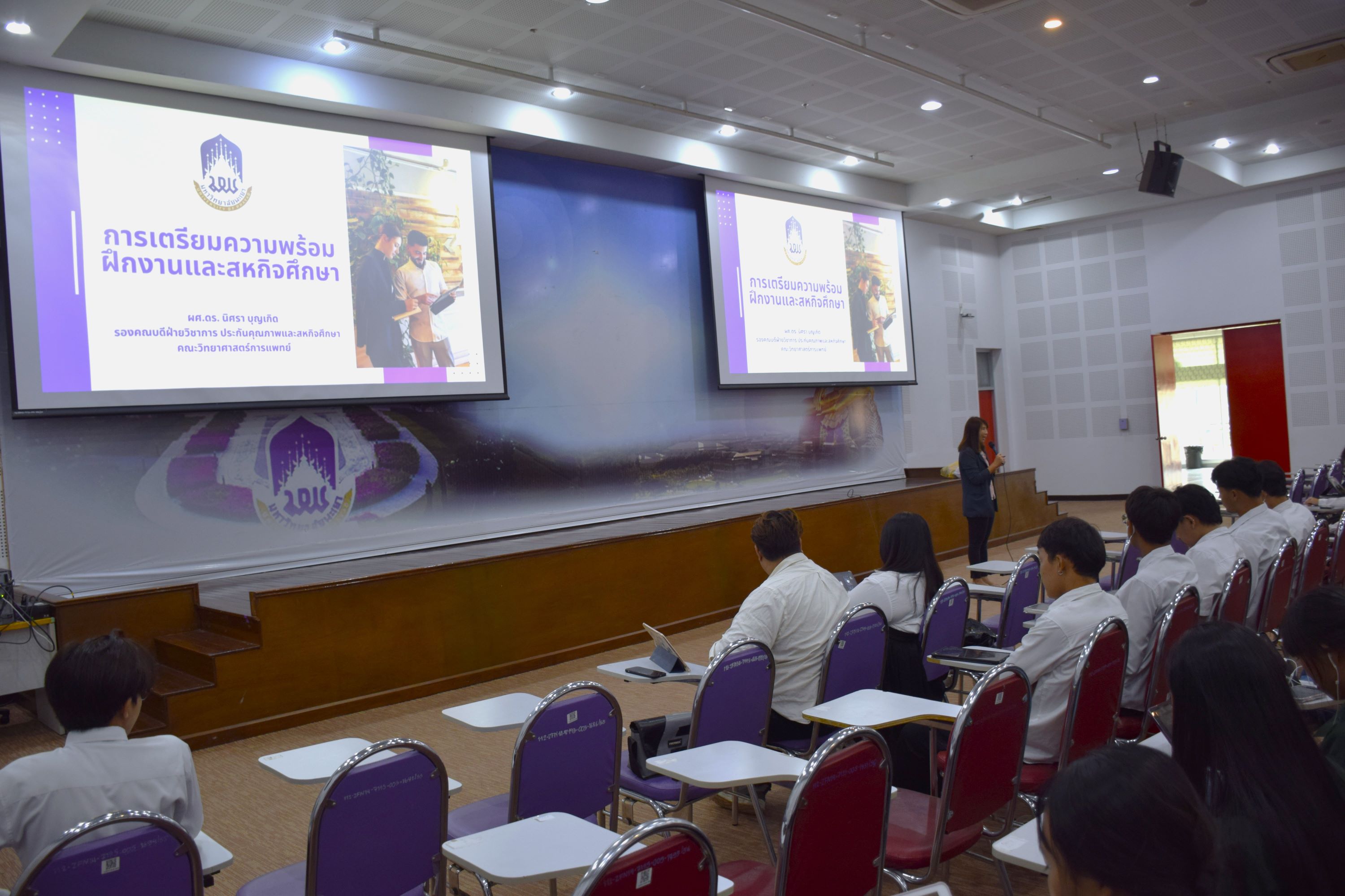 ทั้งนี้เพื่อเป็นการเตรียมความพร้อมให้กับนิสิตที่จะเข้ารับการฝึกงานและสหกิจศึกษา โดยมีหัวข้อการบรรยาย ดังนี้ การเตรียมความพร้อมฝึกงานและสหกิจศึกษา (วิทยากรโดย ผศ.ดร.นิศรา บุญเกิด) การเตรียมเอกสารและการจัดทำรูปเล่มรายงานการฝึกงานและสหกิจศึกษา (วิทยากรโดย คุณนิภาพร ตันเครือ) บุคลิกภาพและการพูดในที่สาธารณะ (คุณเปรมดา ทิพย์เดโช) เทคนิคการสร้างคลิปวิดิโอสำหรับการนำเสนอผลงาน (คุณกานต์พิชชา ศรีใจ) และการรับมือกับปัญหาของการฝึกงานและวิธีการแก้ไขปัญหาเบื้องต้น (วิทยากรโดย อาจารย์นวพร เกษสุวรรณ)