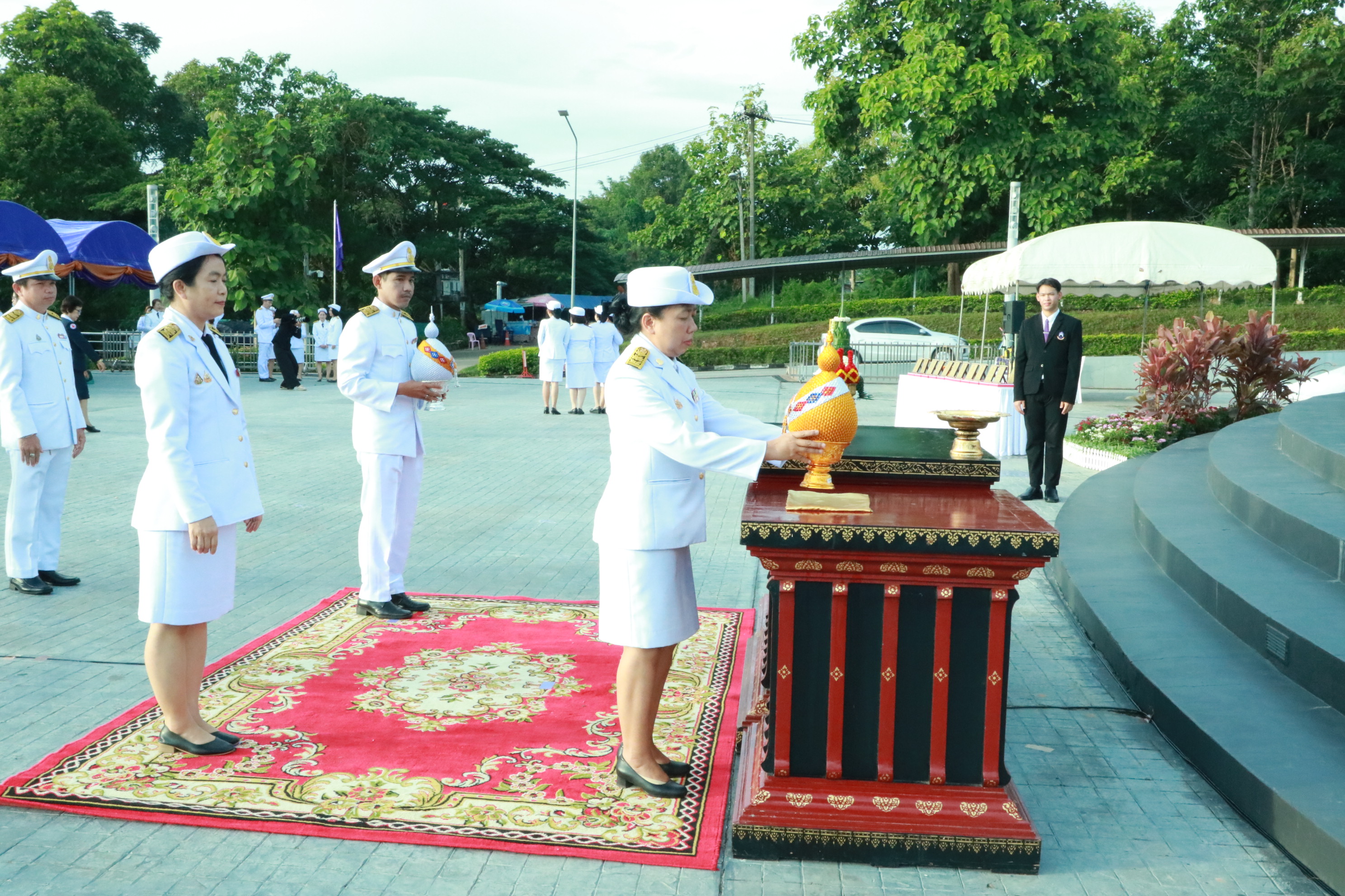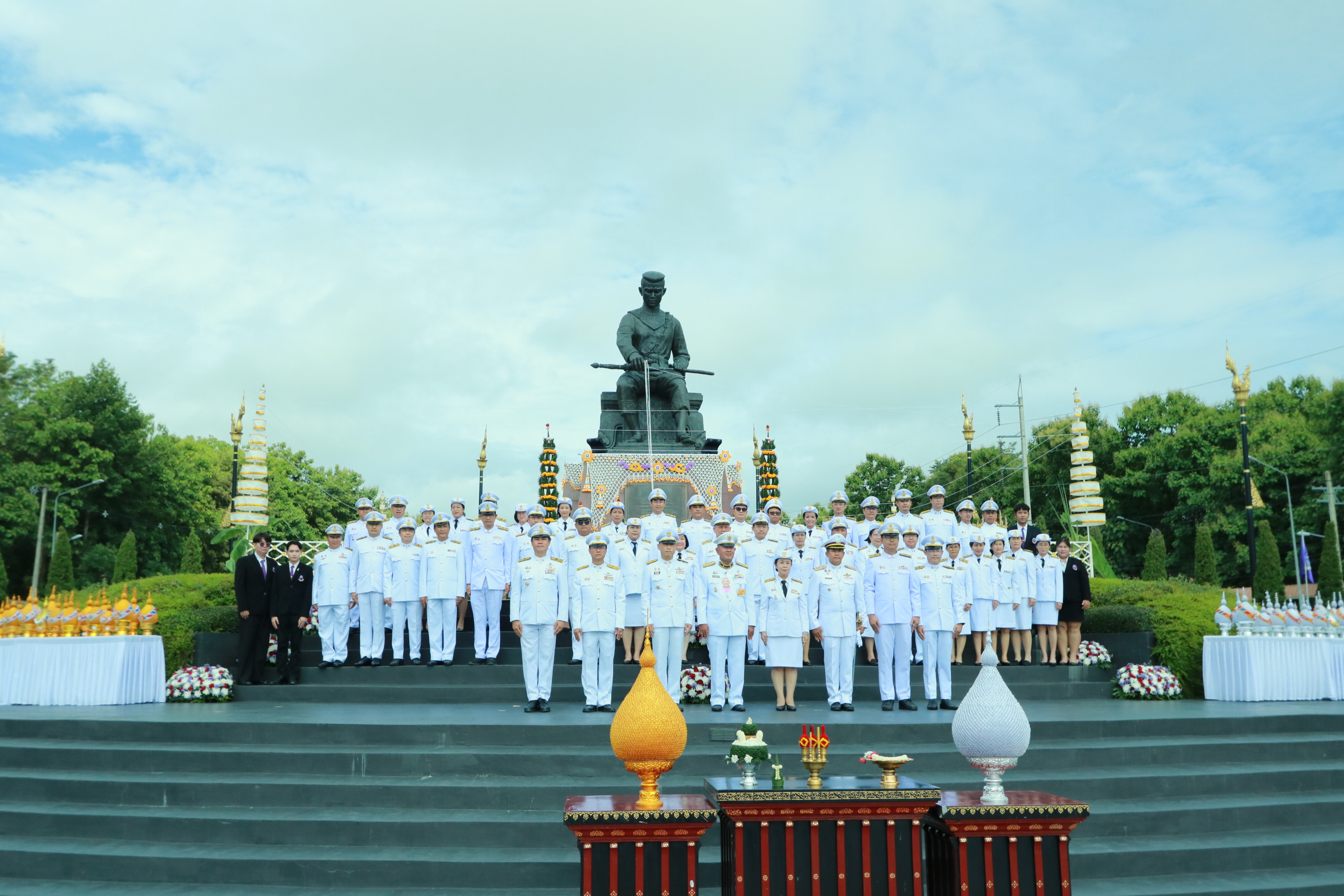 ในการนี้ นายกสภามหาวิทยาลัยพะเยา ประธานในพิธี เปิดกรวยดอกไม้พานธูปเทียนแพ จุดเครื่องทองน้อย วางพานพุ่ม พร้อมกับถวายเครื่องสักการะบูชา เบื้องหน้า พระบรมราชานุสาวรีย์สมเด็จพระนเรศวรมหาราช เพื่อรำลึกพระมหากรุณาธิคุณ และแสดงความจงรักภักดีต่อสถาบันพระมหากษัตริย์ พร้อมร่วมถวายพานพุ่มทอง – พุ่มเงิน สักการะ แด่องค์สมเด็จพระนเรศวรมหาราช