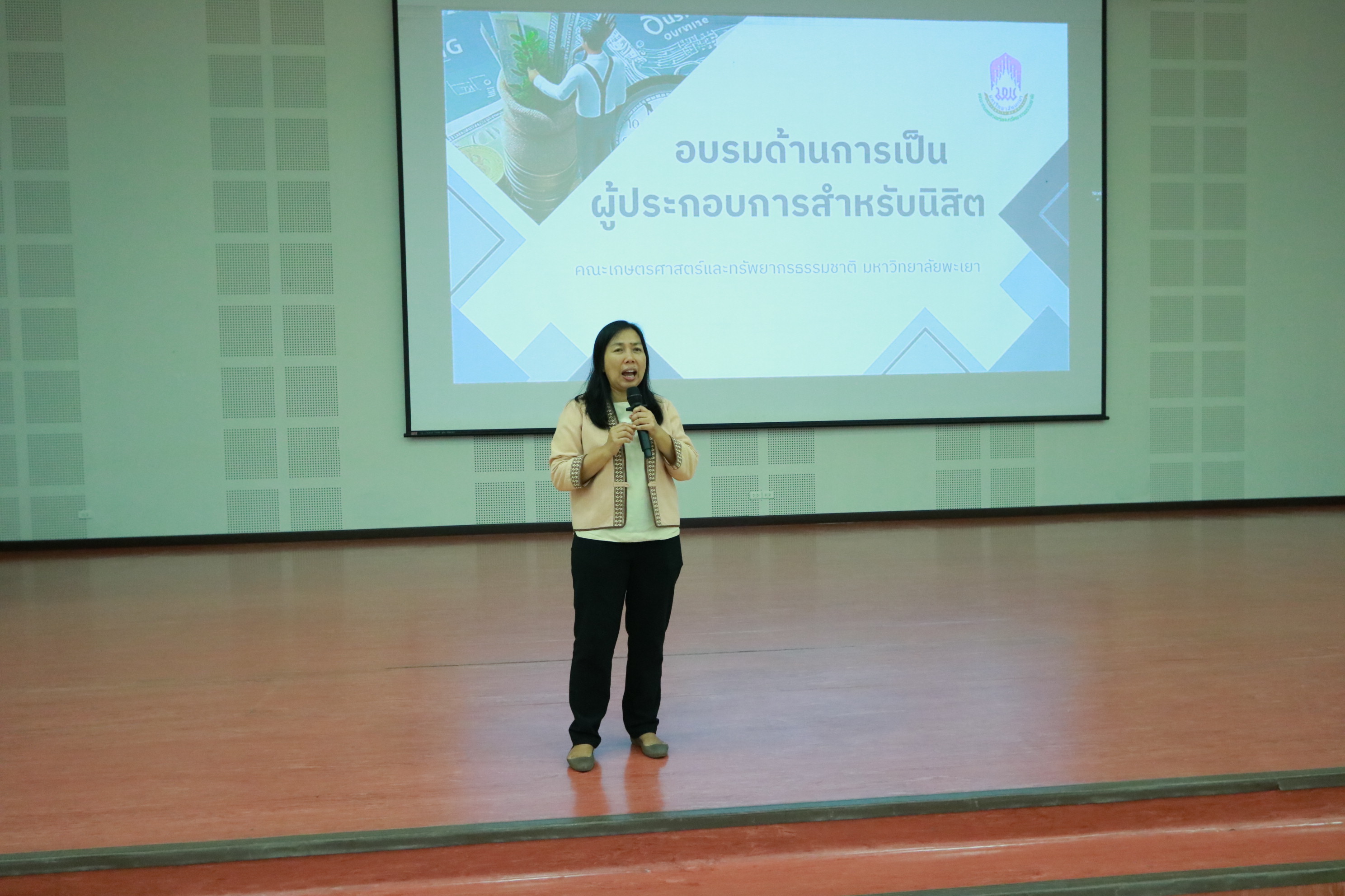 ในวันพฤหัสบดี ที่ 5 กันยายน 2567 งานกิจการนิสิตและพัฒนาคุณภาพนิสิต คณะเกษตรศาสตร์และทรัพยากรธรรมชาติ มหาวิทยาลัยพะเยา จัดโครงการอบรมด้านการพัฒนาการเป็นผู้ประกอบการ ณ ห้อง UB 002 อาคาร 99 ปีพระอุบาลีคุณูปมาจารย์ สำหรับนิสิต ได้รับเกียรติคณบดี ผศ.ดร.วิพรพรรณ์ เนื่องเม็ก กล่าวเปิดโครงการดังกล่าวฯ