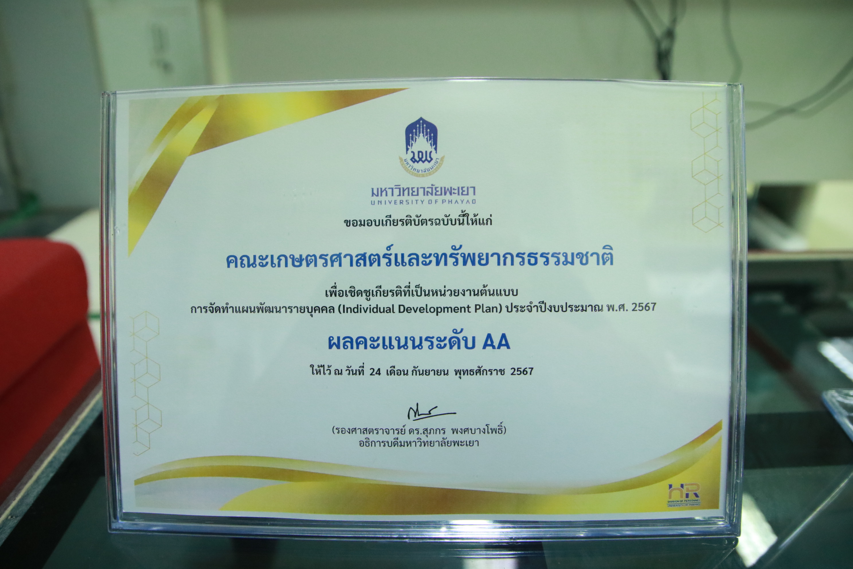คณะเกษตรศาสตร์ฯ ผลงานที่มีแนวทางปฏิบัติที่เป็นเลิศ ด้านการจัดทำและดำเนินการตามแผนพัฒนาบุคลากรรายบุคคล (Individual Development Plan) อย่างมีประสิทธิภาพ