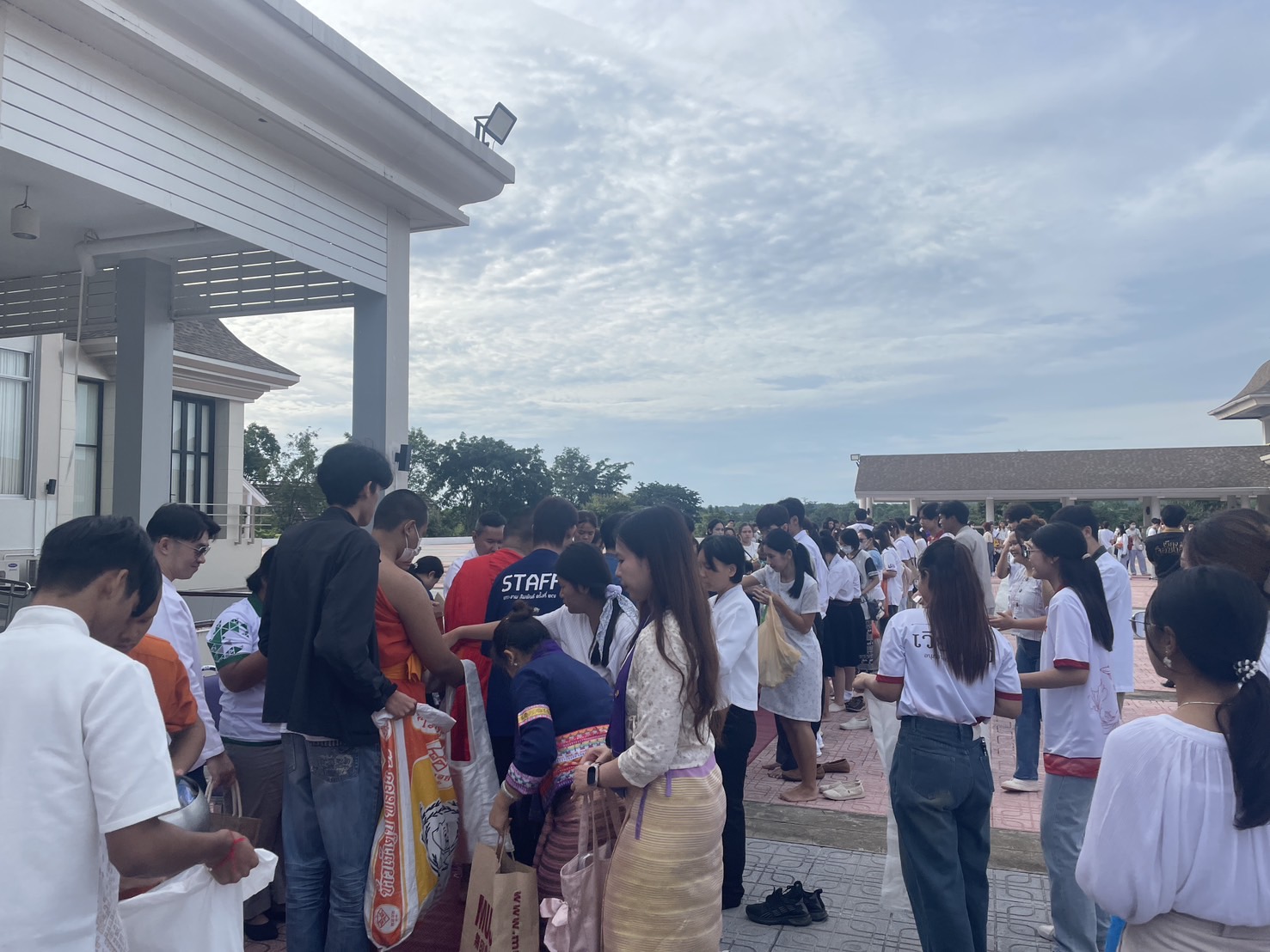 On the morning of June 21, 2025, another meaningful activity titled “Fa Mui Freshmen Join in Offering Alms” was held. This merit-making ceremony encouraged ethical values and cultural preservation. Freshmen, dressed in traditional and respectful attire, joined in offering dry food and essentials to Buddhist monks, creating a spiritually enriching and harmonious atmosphere.