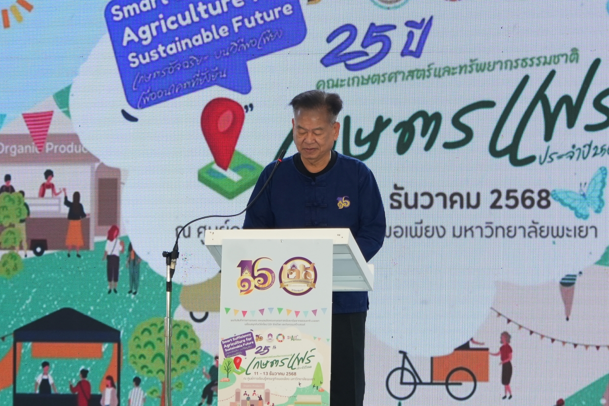 12 ธันวาคม 2568: มหาวิทยาลัยพะเยา เดินหน้ายกระดับเกษตรกรรมไทยสู่ความยั่งยืน จัดพิธีเปิดงาน “เกษตรแฟร์ 2568” อย่างยิ่งใหญ่ ณ ศูนย์การเรียนรู้เศรษฐกิจพอเพียง เพื่อเฉลิมฉลองวาระครบรอบ 25 ปี แห่งการก่อตั้งคณะเกษตรศาสตร์และทรัพยากรธรรมชาติ ชูแนวคิด “Smart Sufficiency Agriculture for Sustainable Future: เกษตรอัจฉริยะ บนวิถีพอเพียง เพื่ออนาคตที่ยั่งยืน”