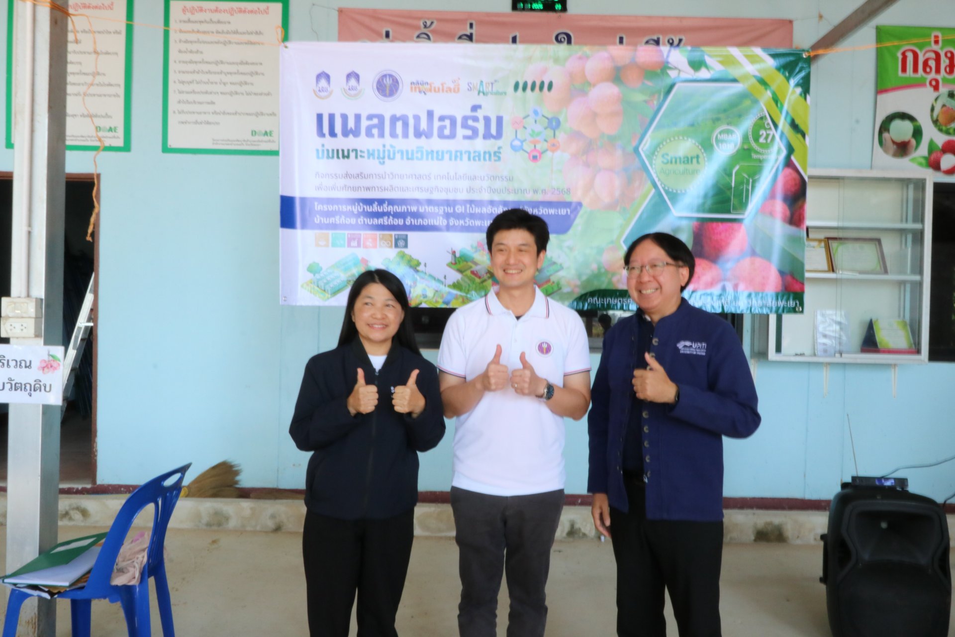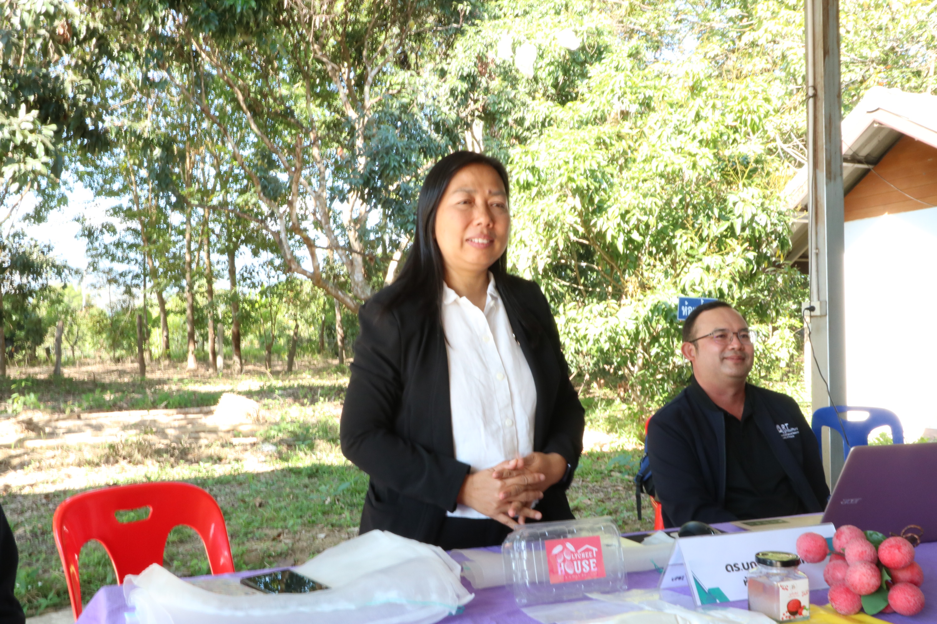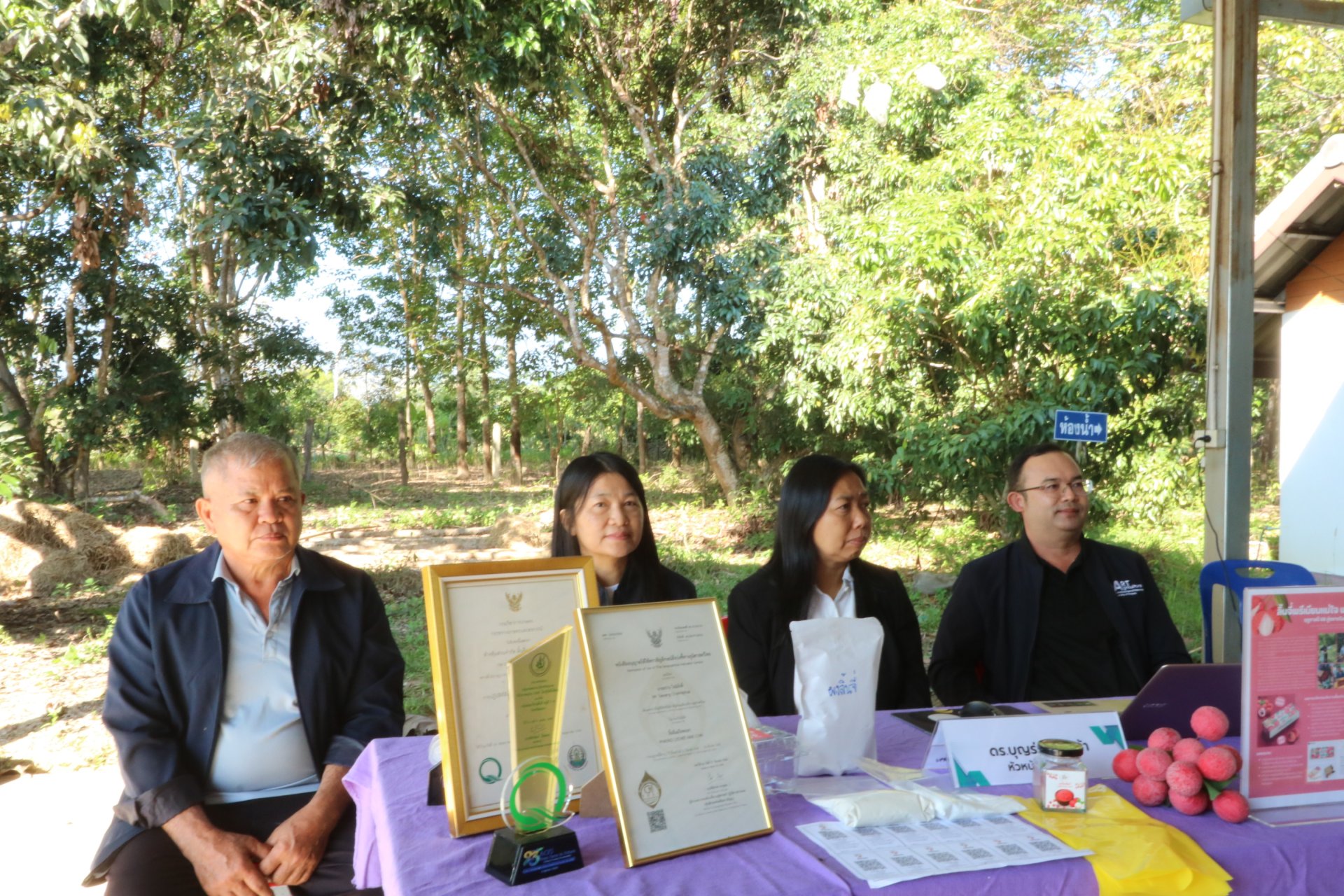 The visit also welcomed a monitoring committee from the Ministry of Higher Education, Science, Research and Innovation (MHESI) to evaluate the project's progress. The research team—comprising Dr. Boonruam Kidka, Asst. Prof. Dr. Wasana Phitakpol, Asst. Prof. Dr. Wipornpan Nuengmek, Assoc. Prof. Dr. Manas Titayawan, and Dr. Ronnakorn Sroynak—has been working closely with the Sri Thoi Lychee Quality Development Community Enterprise.