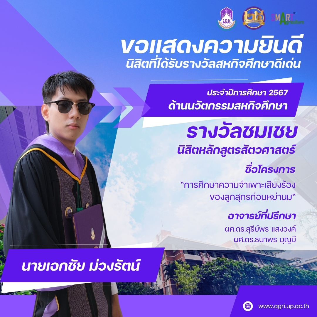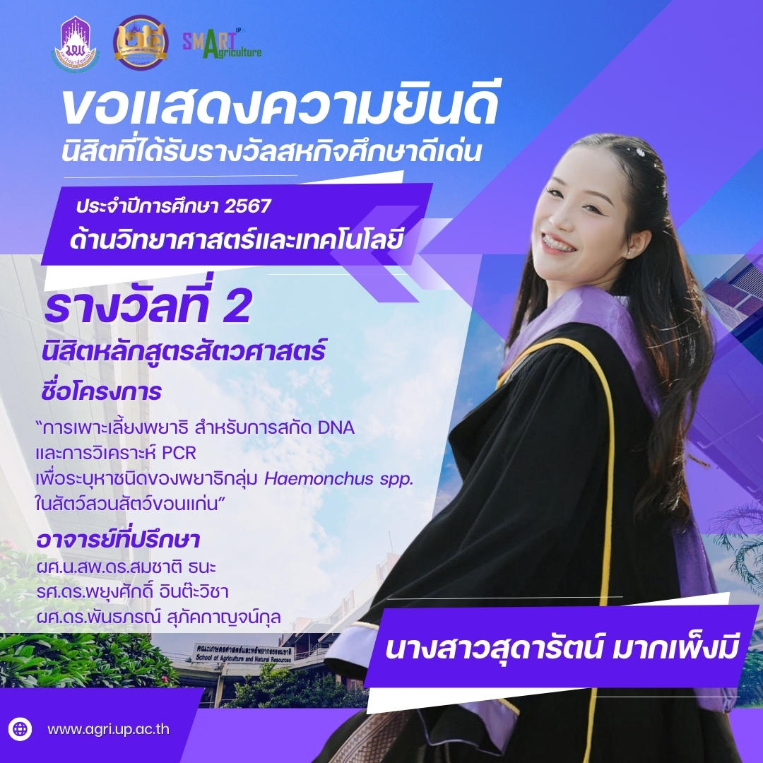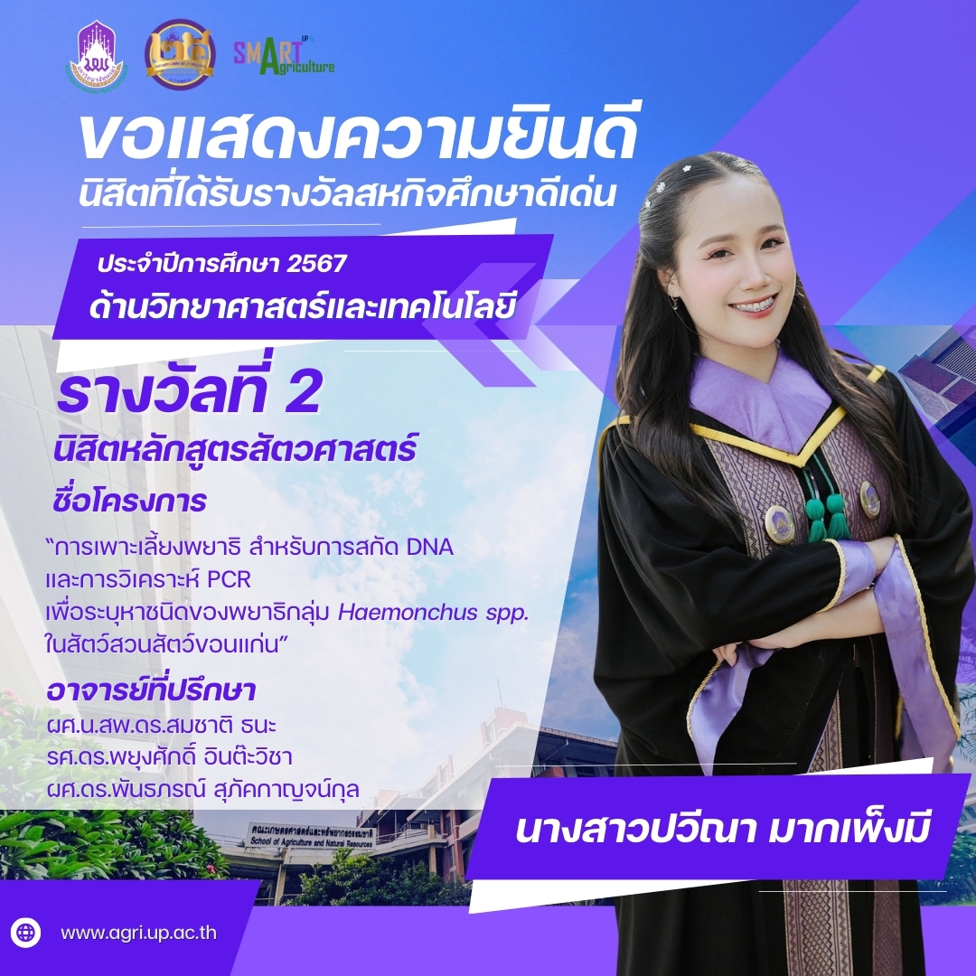 คณะเกษตรศาสตร์และทรัพยากรธรรมชาติ มหาวิทยาลัยพะเยา (School of Agriculture and Natural Resources) ขอแสดงความชื่นชมและร่วมแสดงความยินดีกับนิสิตคนเก่งของเรา