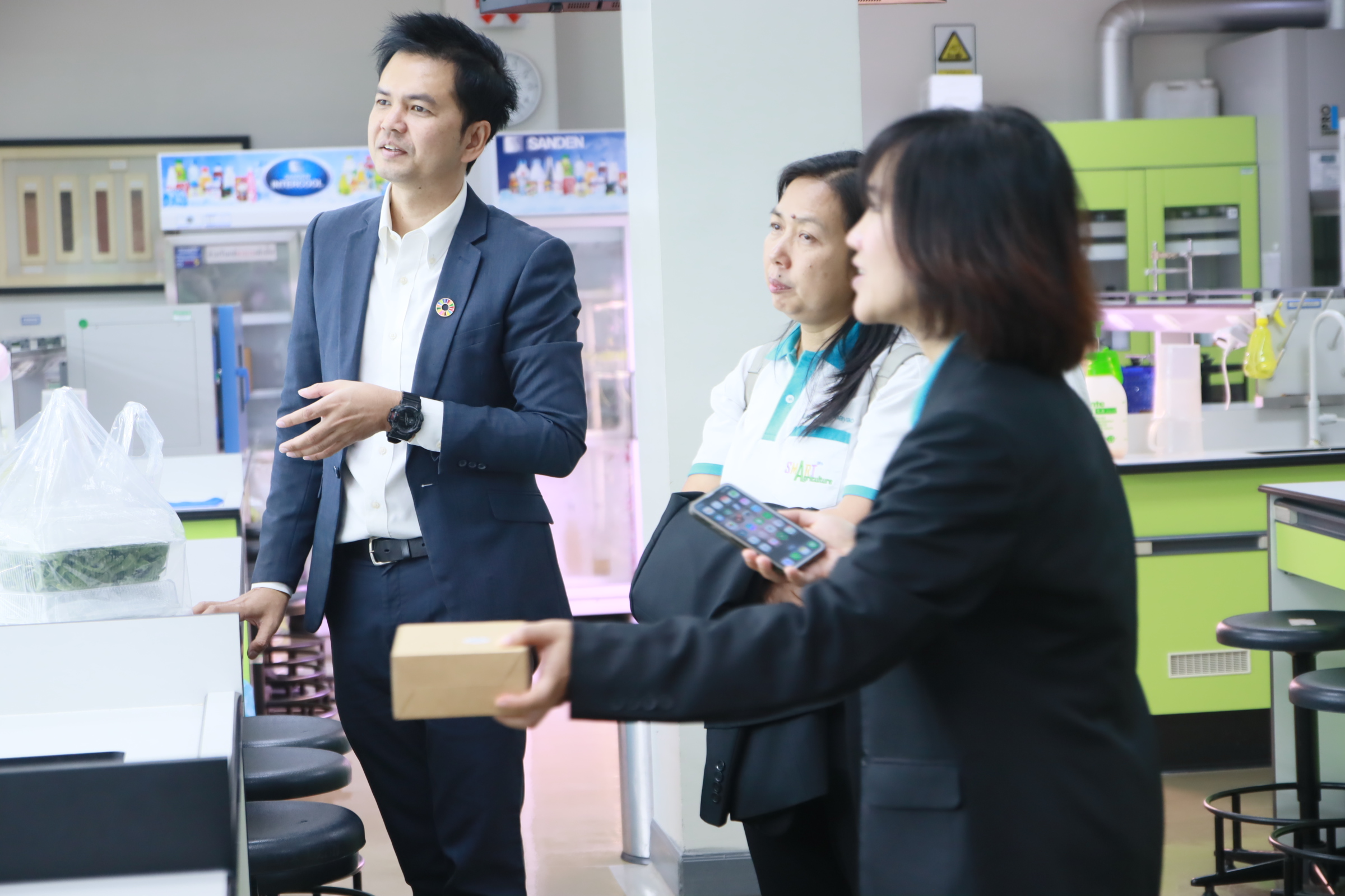 The study tour included a visit to the Agricultural Innovation Learning Center and laboratories, key features of Panyapiwat Institute of Management. The center showcases cutting-edge technologies such as Precision Agriculture, Artificial Intelligence (AI) for agricultural data analysis, and automated farming systems, offering practical learning experiences for students.