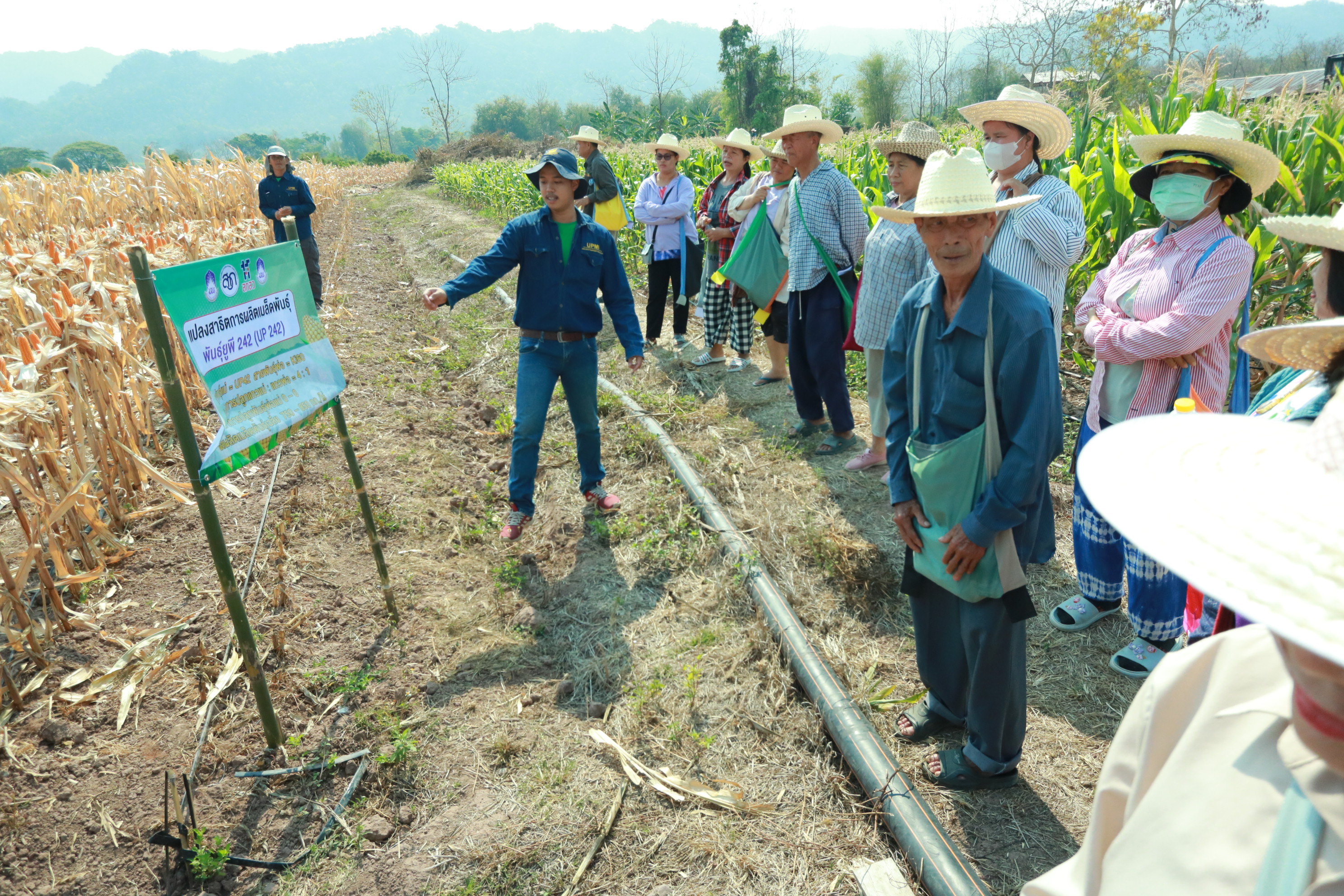 ชมแปลงสาธิตข้าวโพดพันธุ์ใหม่ "UP 242 และ UP 227" ซึ่งเป็นผลงานวิจัยจากมหาวิทยาลัยพะเยา ที่มีลักษณะเด่นด้านผลผลิตสูง ทนทานต่อโรค และเหมาะสมกับสภาพพื้นที่ภาคเหนือ