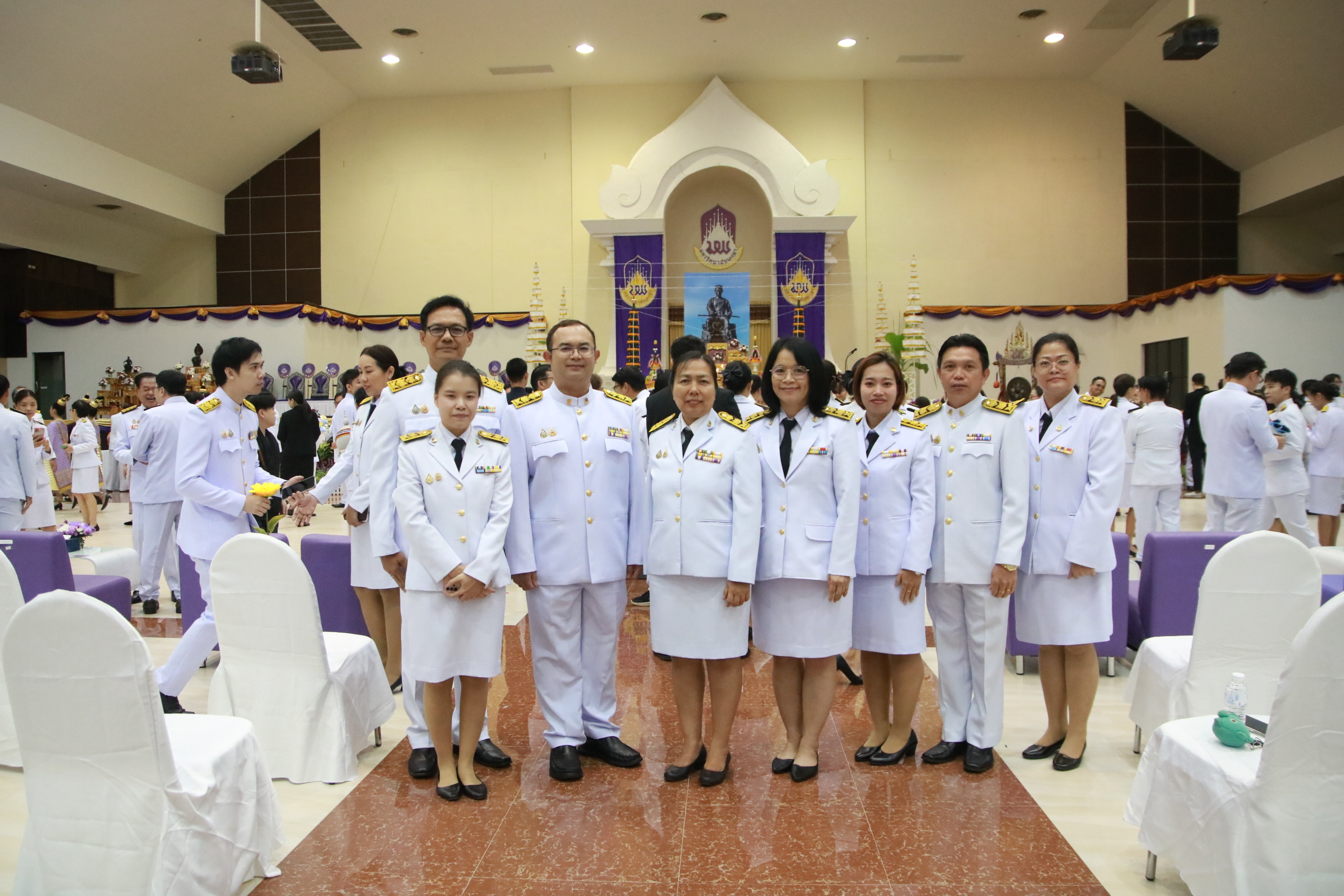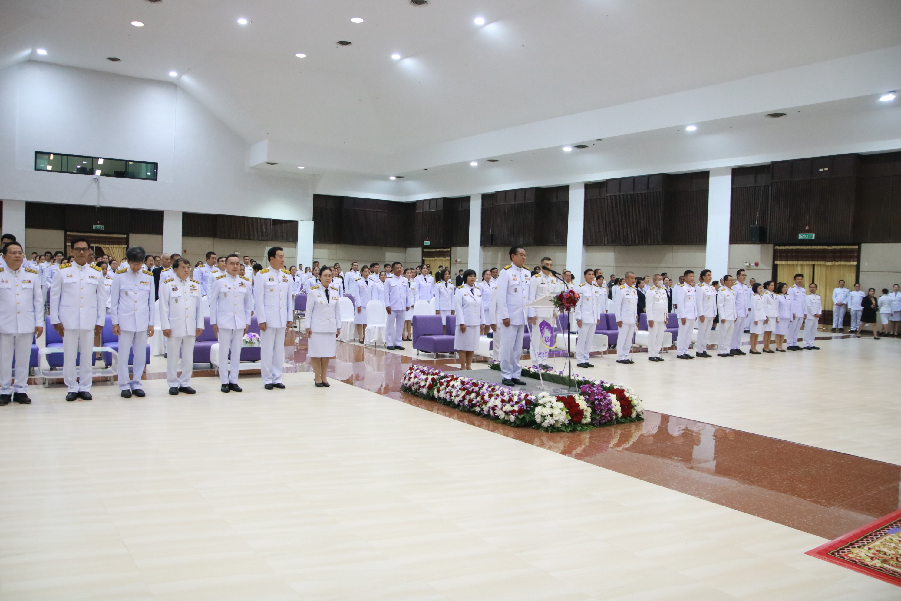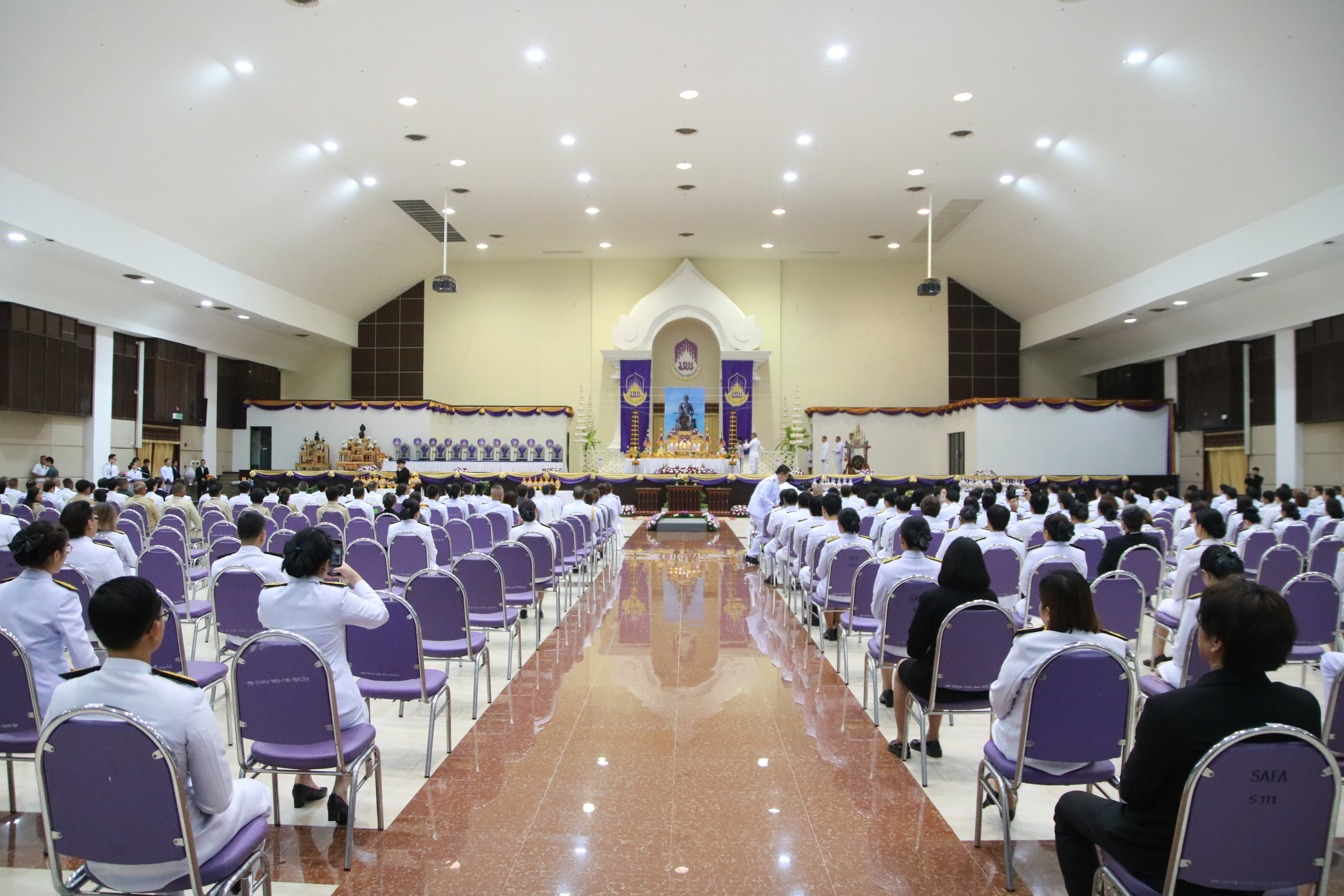 The ceremony commenced with a solemn tribute ritual. The Chairman of the University Council led the offerings by placing a traditional flower tray, lighting ceremonial candles and incense, and presenting golden and silver offerings before the King Naresuan the Great Monument—a revered monarch known for his brilliance and immeasurable contributions to the nation. This act served as a gesture of remembrance and a heartfelt expression of loyalty to the Thai monarchy.