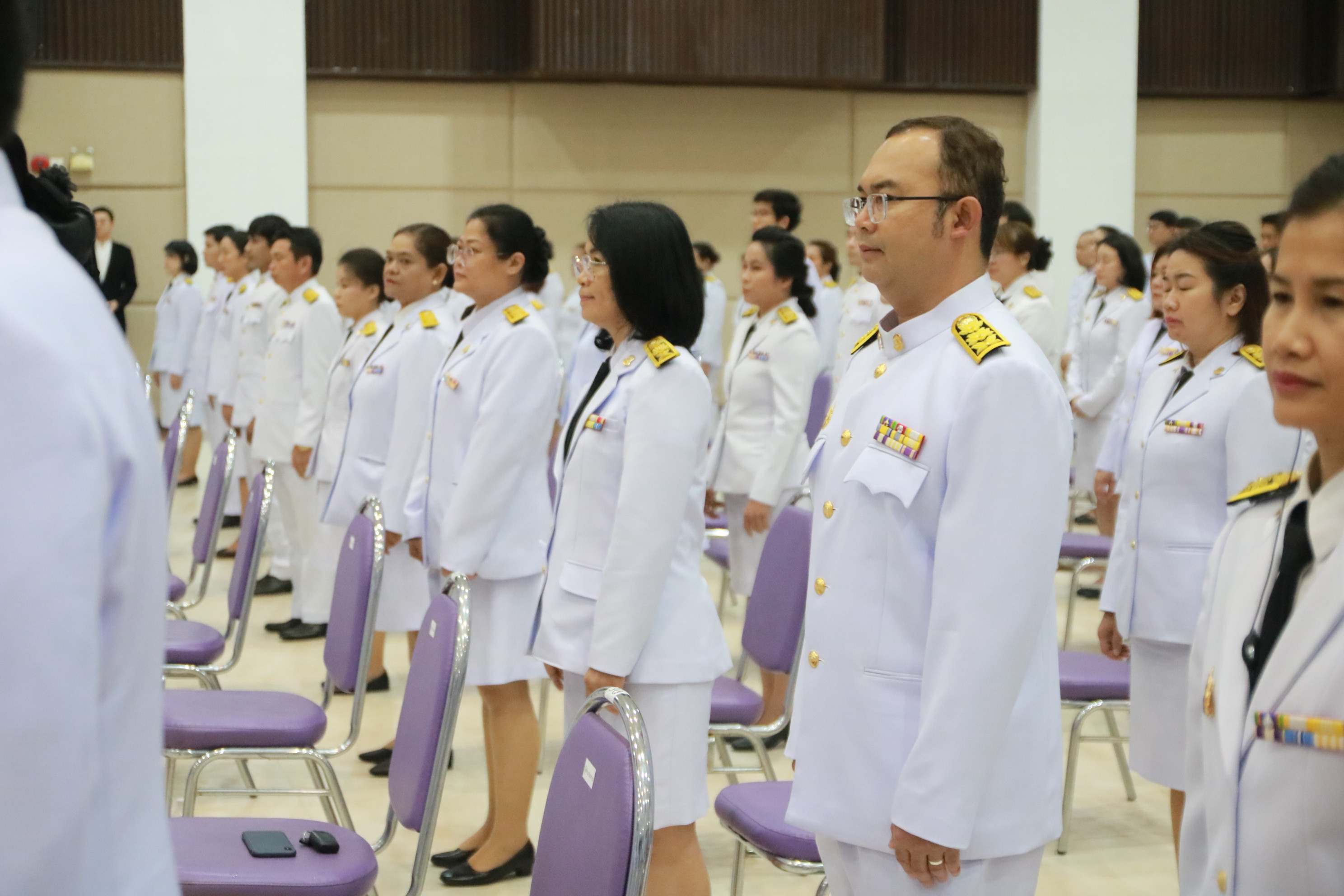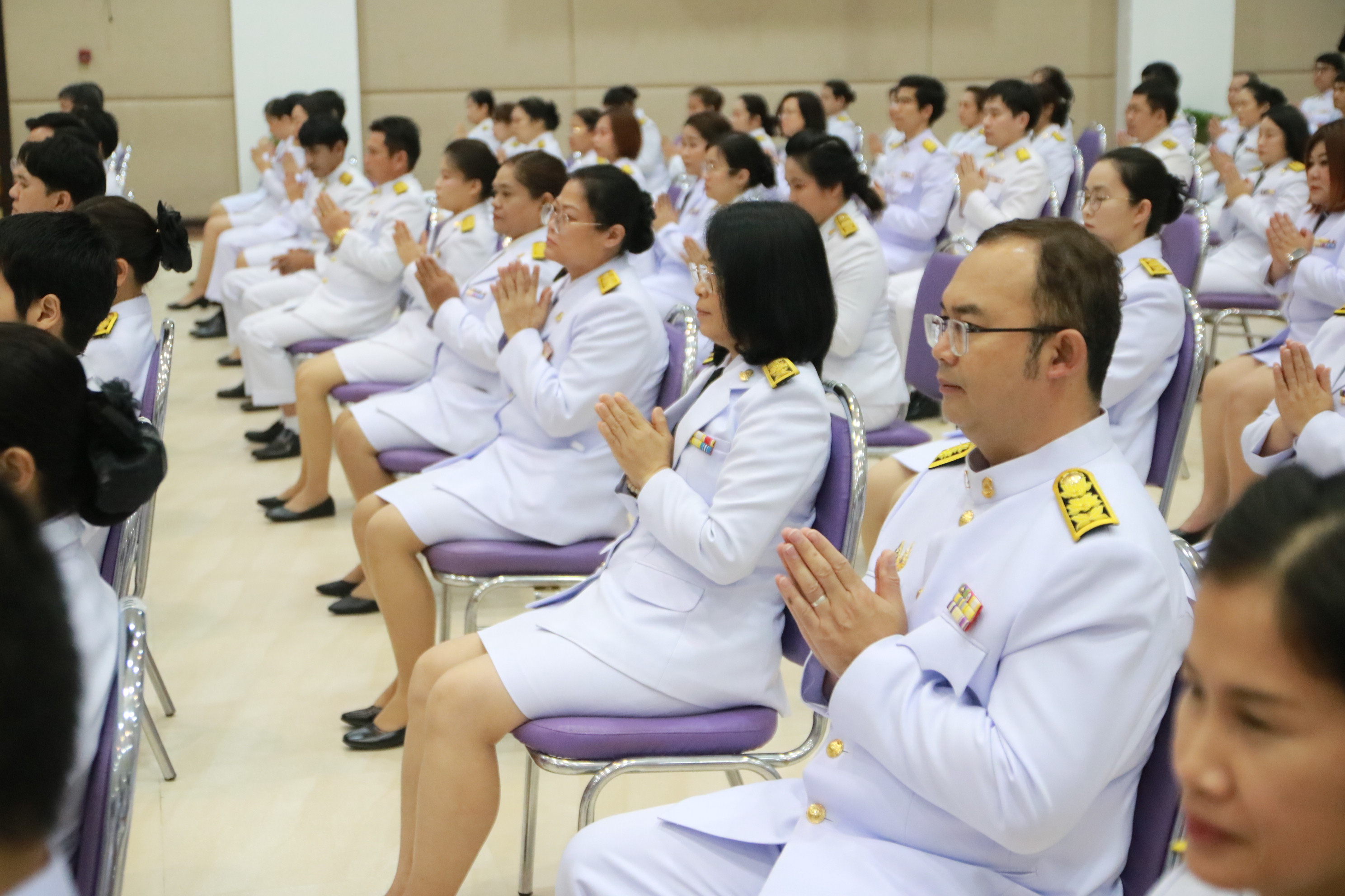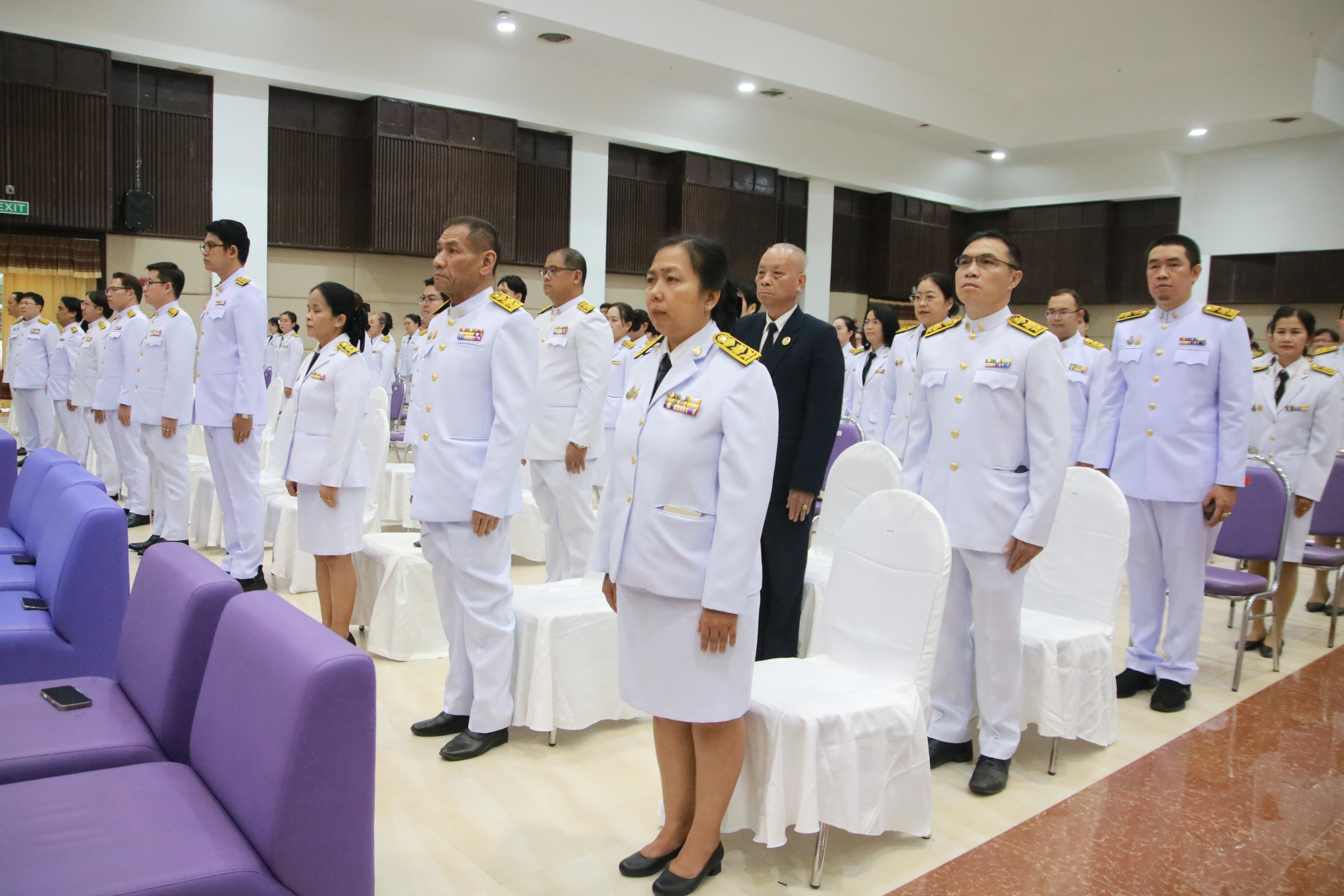 The ceremony commenced with a solemn tribute ritual. The Chairman of the University Council led the offerings by placing a traditional flower tray, lighting ceremonial candles and incense, and presenting golden and silver offerings before the King Naresuan the Great Monument—a revered monarch known for his brilliance and immeasurable contributions to the nation. This act served as a gesture of remembrance and a heartfelt expression of loyalty to the Thai monarchy.