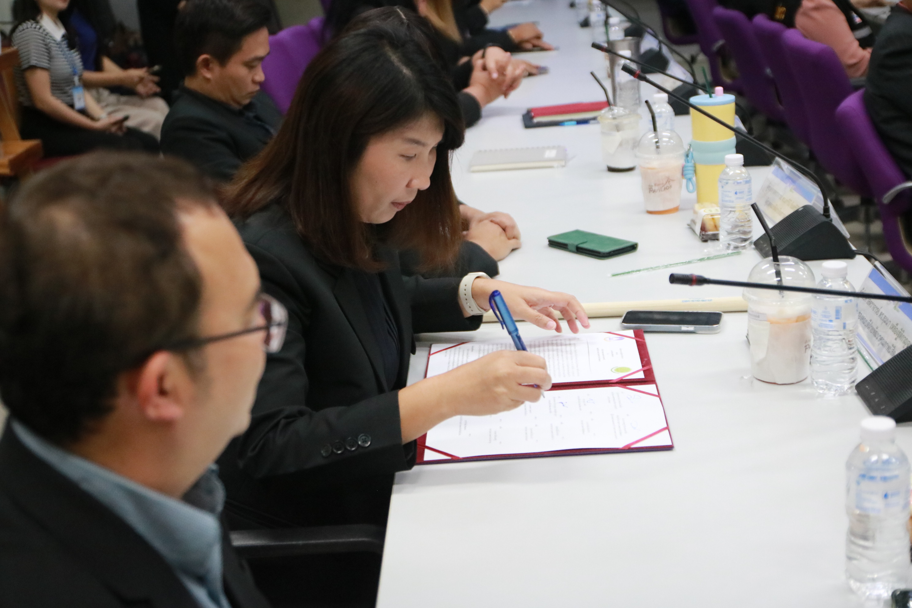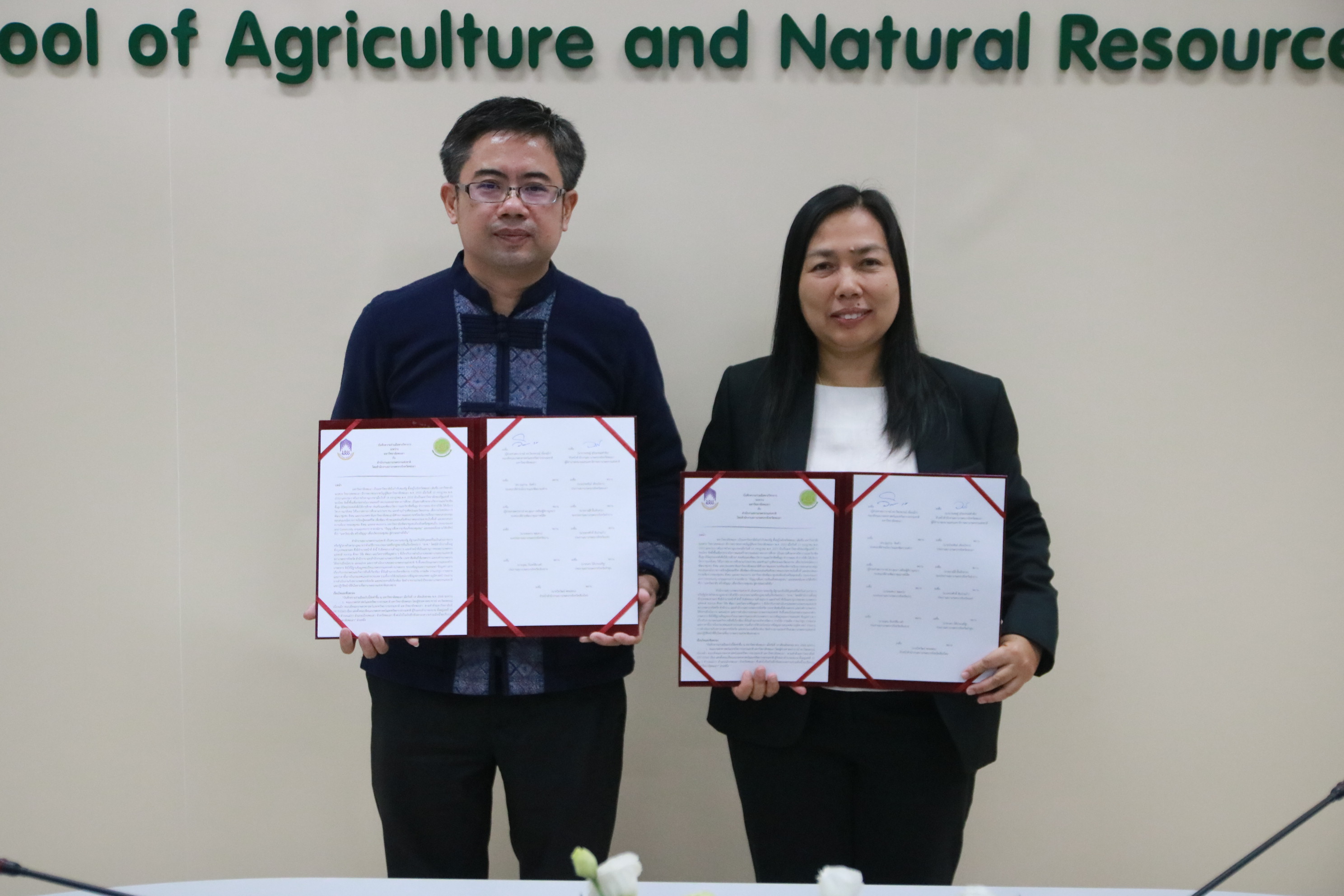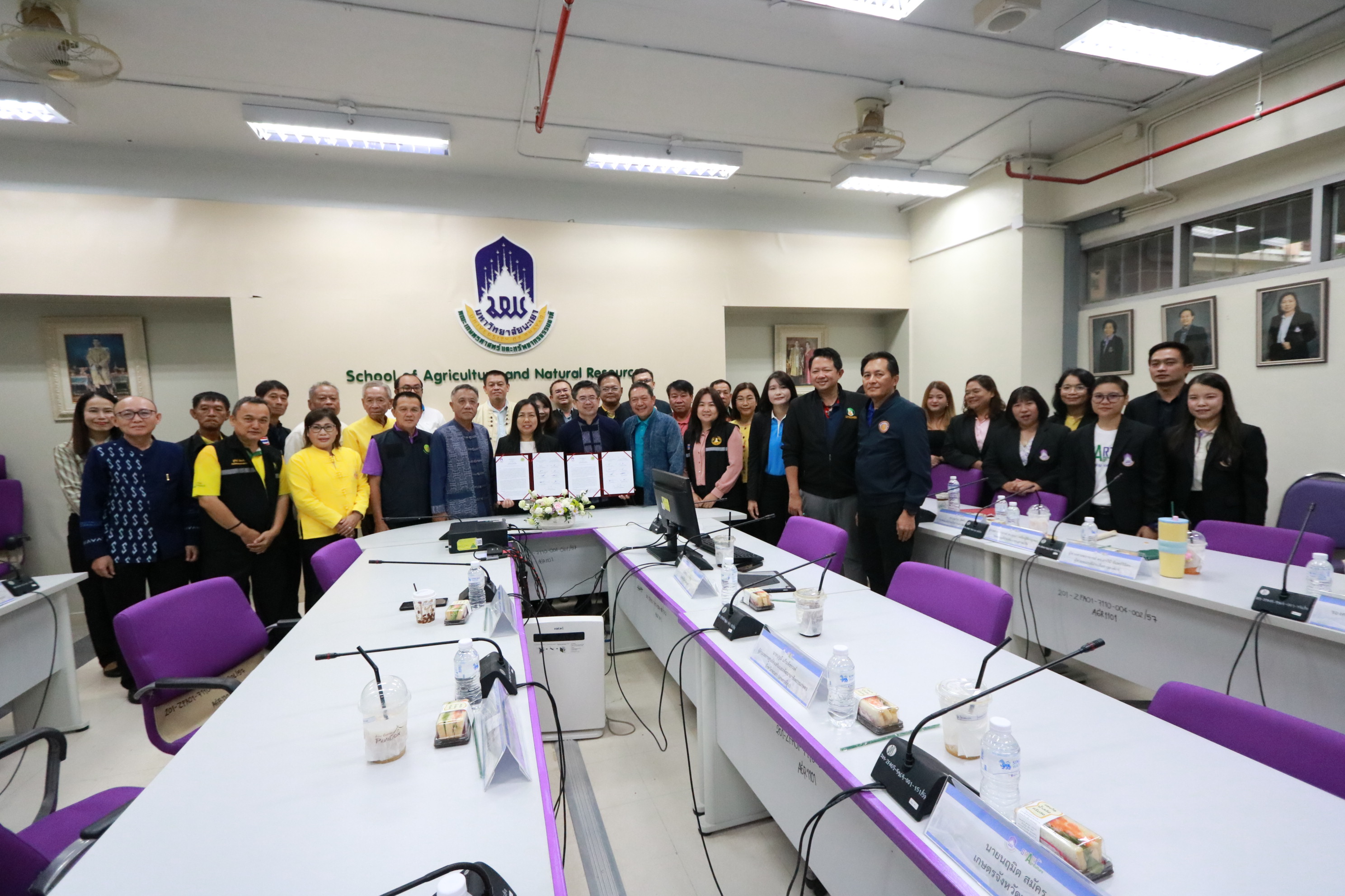 The signing ceremony was honored by Asst. Prof. Dr. Wipornpan Nuengmek, Dean of the School of Agriculture and Natural Resources, who led a delegation of administrators including vice deans, assistant deans, faculty members, and staff. Representatives from the National Farmers Council also attended the ceremony and engaged in strategic discussions to establish long-term cooperation.