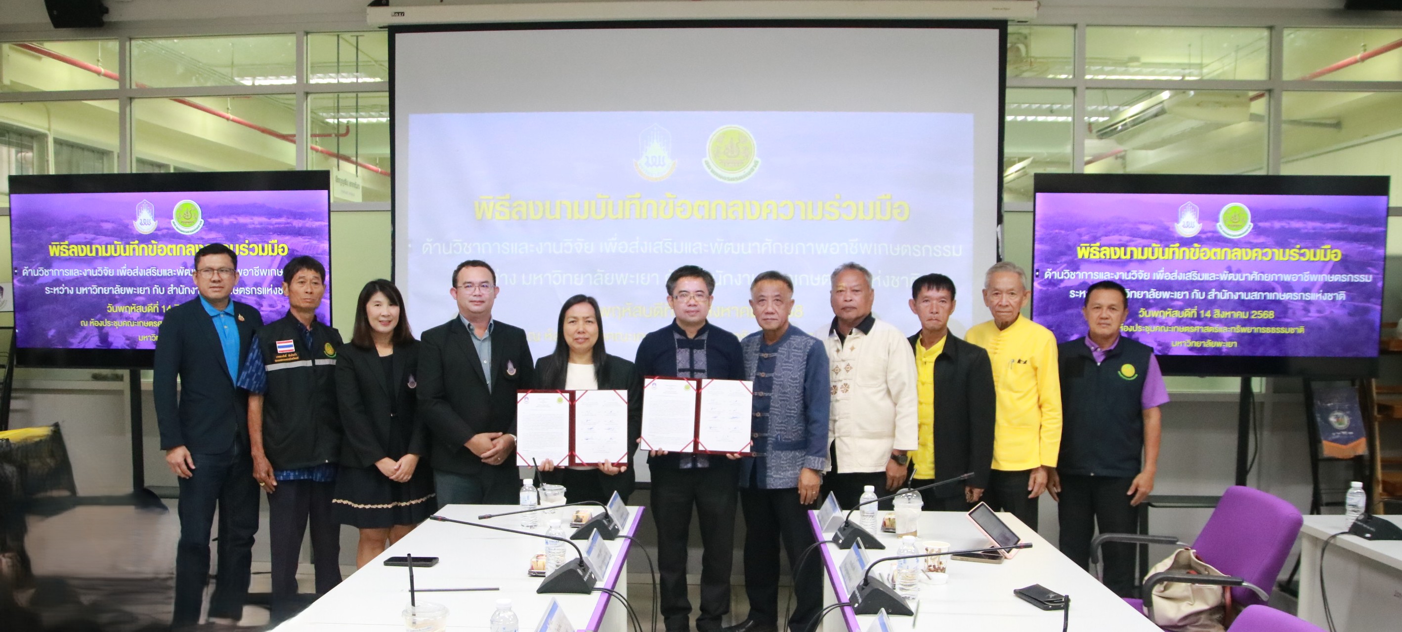 คณะเกษตรศาสตร์และทรัพยากรธรรมชาติ มหาวิทยาลัยพะเยา ได้ร่วมพิธีลงนาม บันทึกข้อตกลงความร่วมมือทางวิชาการและงานวิจัย (MOU) กับ สำนักงานสภาเกษตรกรแห่งชาติ โดยมีวัตถุประสงค์เพื่อส่งเสริมและพัฒนาศักยภาพของเกษตรกรไทยผ่านการศึกษา วิจัย และนวัตกรรม