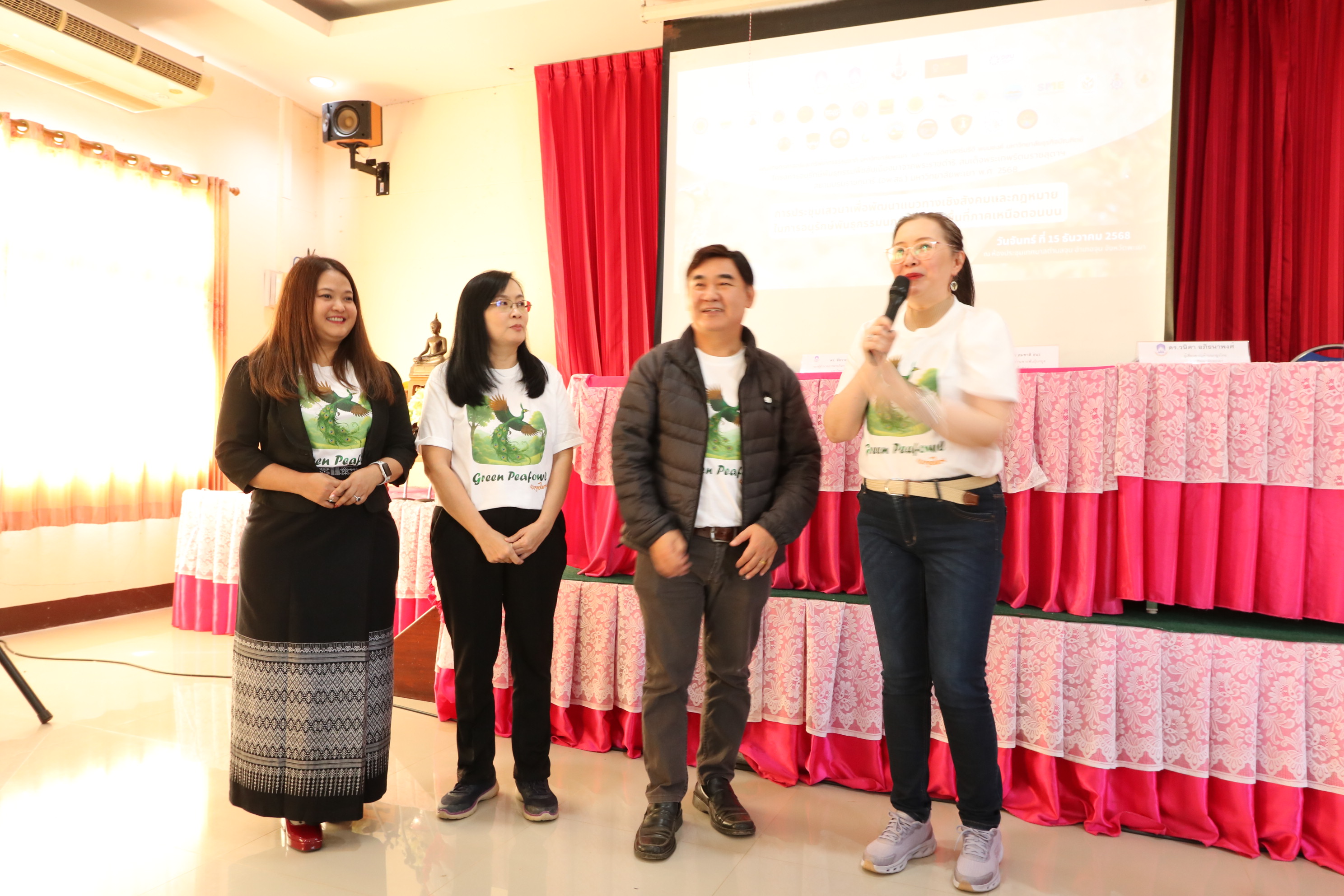 The seminar aimed to integrate legal frameworks with social development to protect the endangered Thai Green Peafowl. It served as a platform for exchanging ideas among government agencies, the private sector, local communities, and the Protected Area Regional Office 15 (Chiang Rai). Additionally, the event featured an exhibition of local products to promote economic opportunities for the Chun district community.
