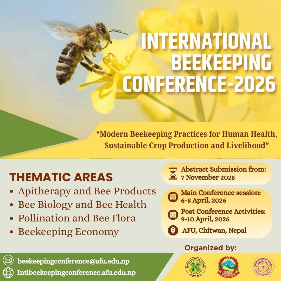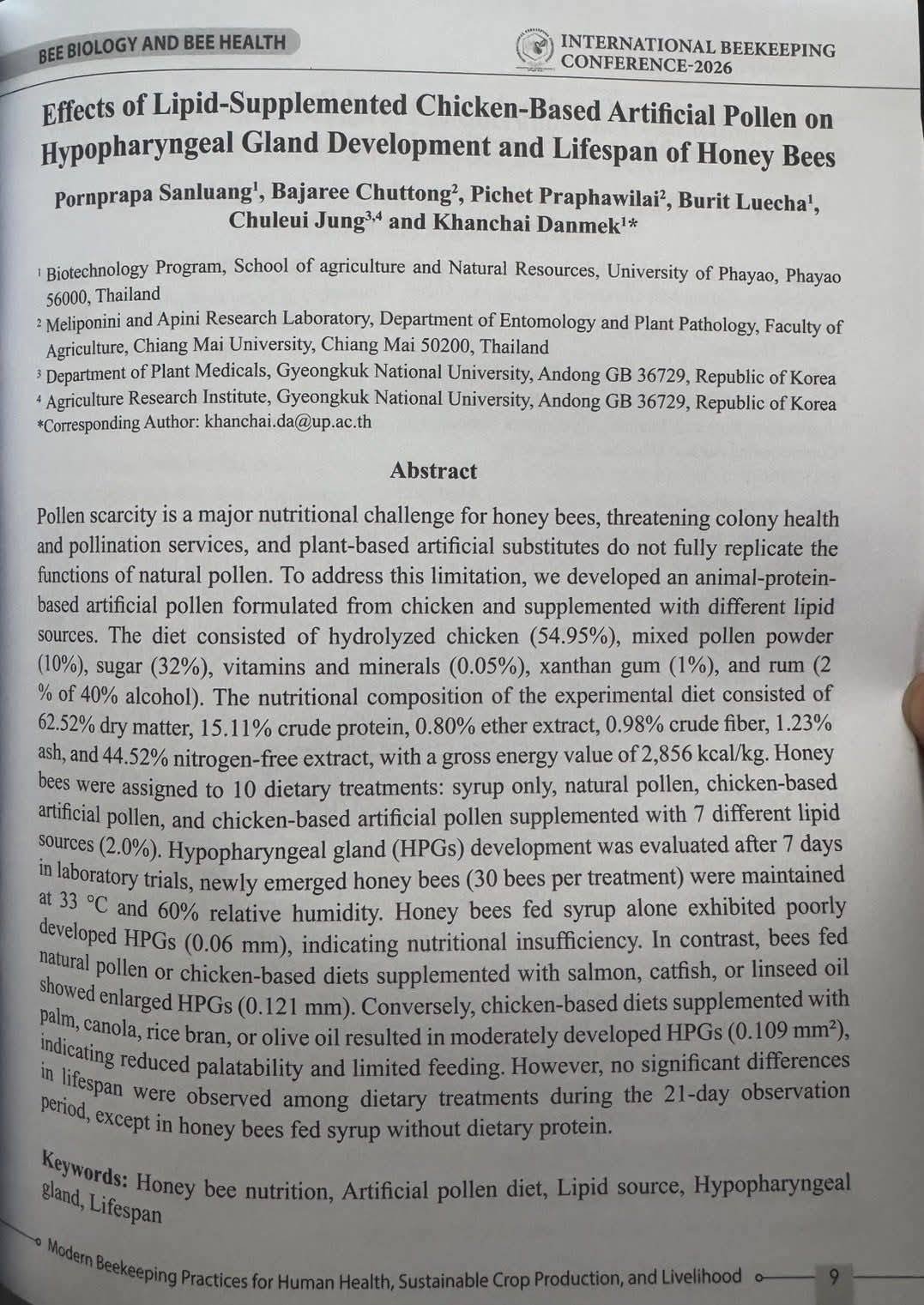 อาจารย์พรประภา แสนหลวง อาจารย์ประจำหลักสูตรเกษตรศาสตร์ฯ คณะเกษตรศาสตร์และทรัพยากรธรรมชาติ มหาวิทยาลัยพะเยา ได้เข้าร่วมงานประชุมวิชาการระดับนานาชาติ International Beekeeping Conference 2026 ซึ่งจัดขึ้น ณ Agriculture and Forestry University เมืองจิตรวัน ประเทศเนปาล โดยได้เป็นตัวแทนในการนำเสนอผลงานวิชาการในรูปแบบการบรรยาย (Oral Presentation)