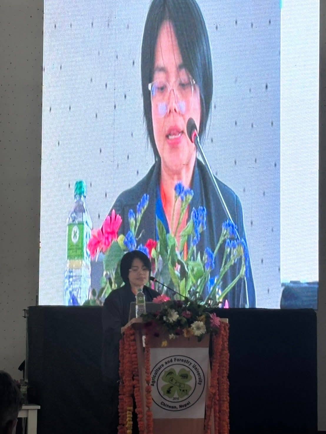 On April 7, 2026, Ajarn Pornprapa Sanluang, a lecturer in the Agriculture Program at the School of Agriculture and Natural Resources, University of Phayao, delivered an oral presentation at the International Beekeeping Conference 2026. The event was hosted by the Agriculture and Forestry University in Chitwan, Nepal.